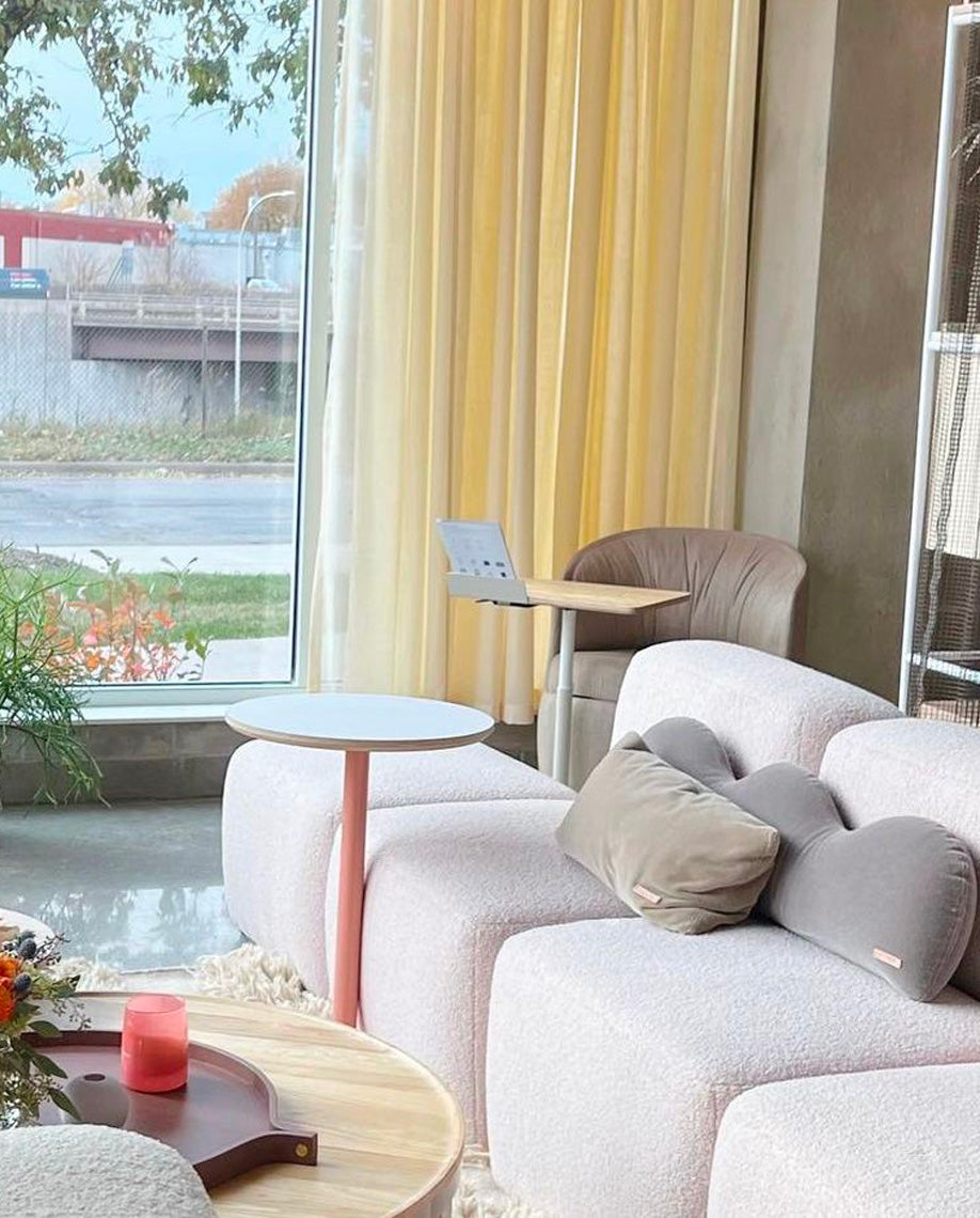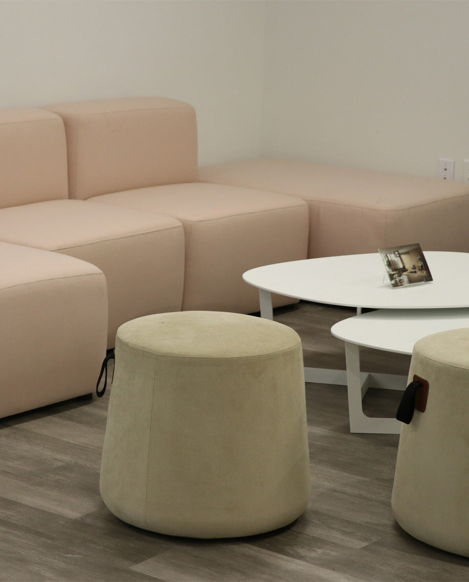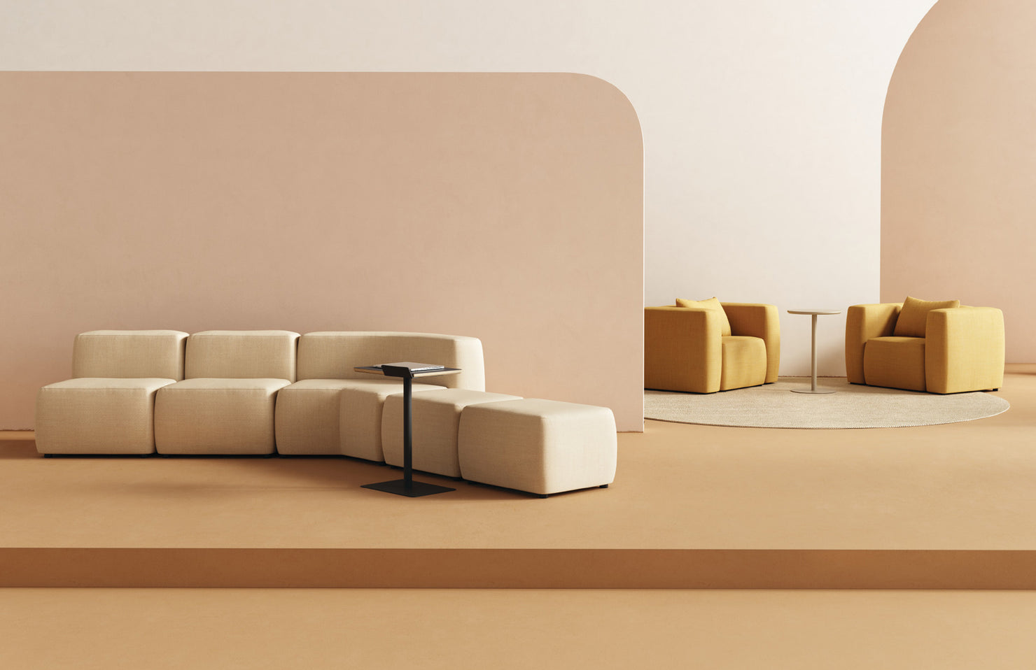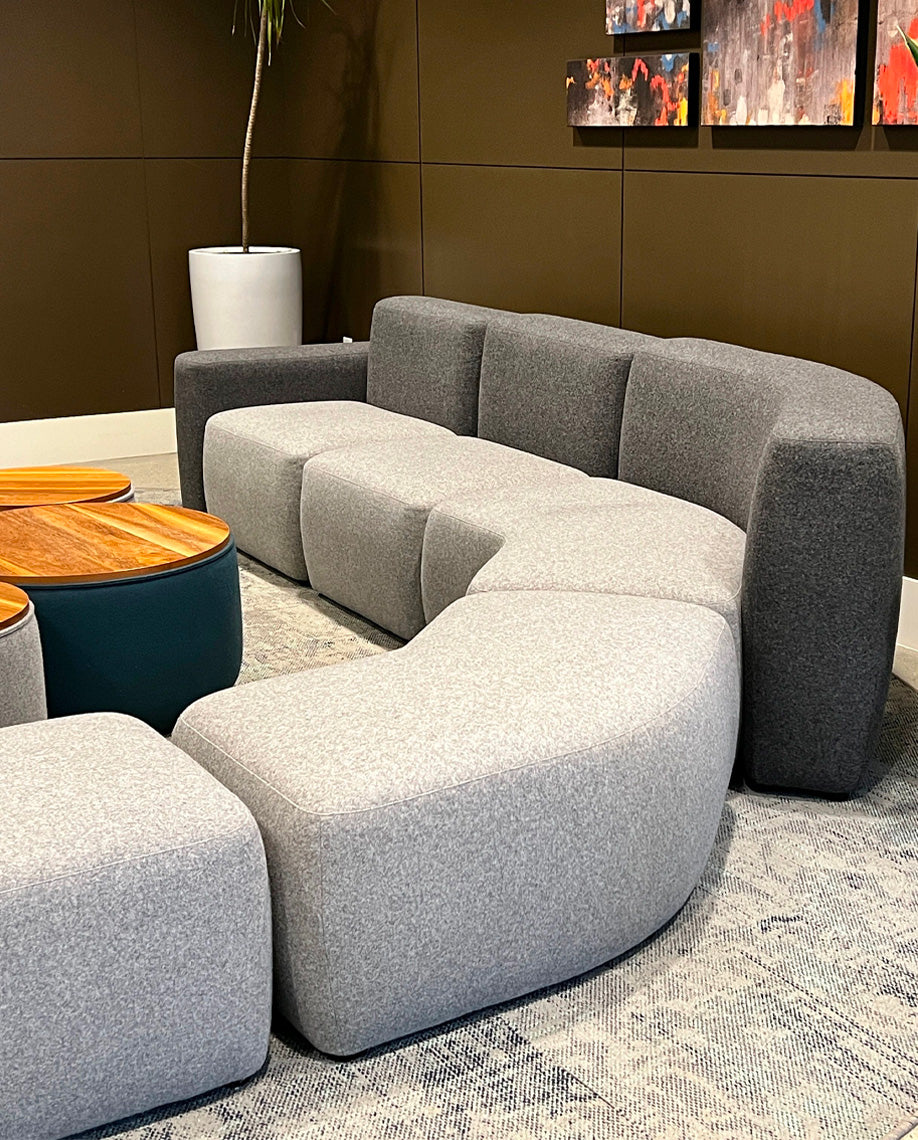 A system of configurable seats, arms, and backs, making use of minimal elements for intuitive and easy configurations with an endless variety of layouts.