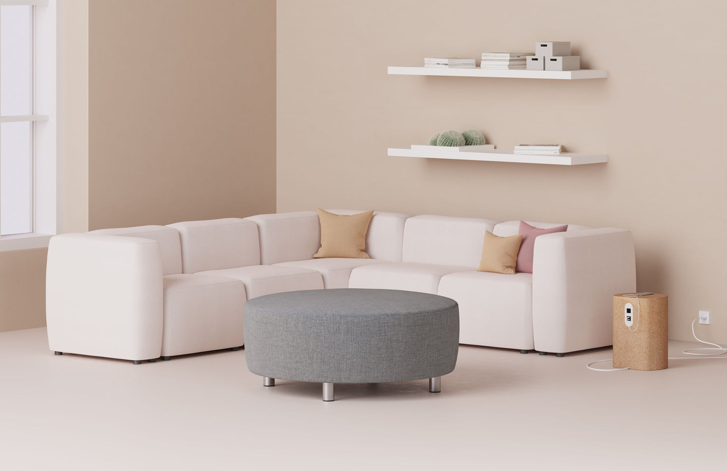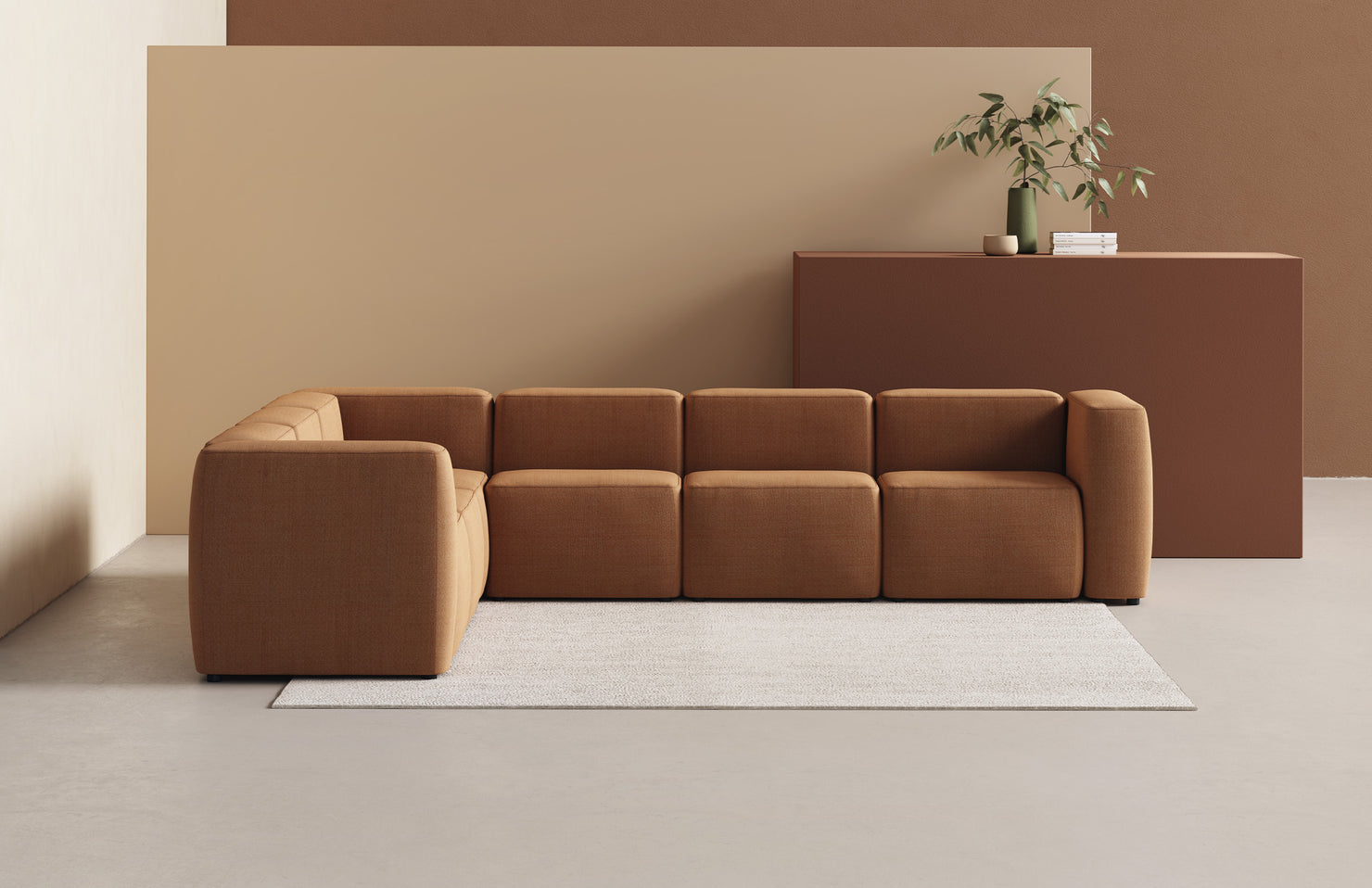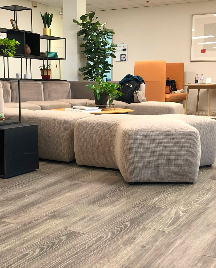 A system of configurable seats, arms, and backs, making use of minimal elements for intuitive and easy configurations with an endless variety of layouts.