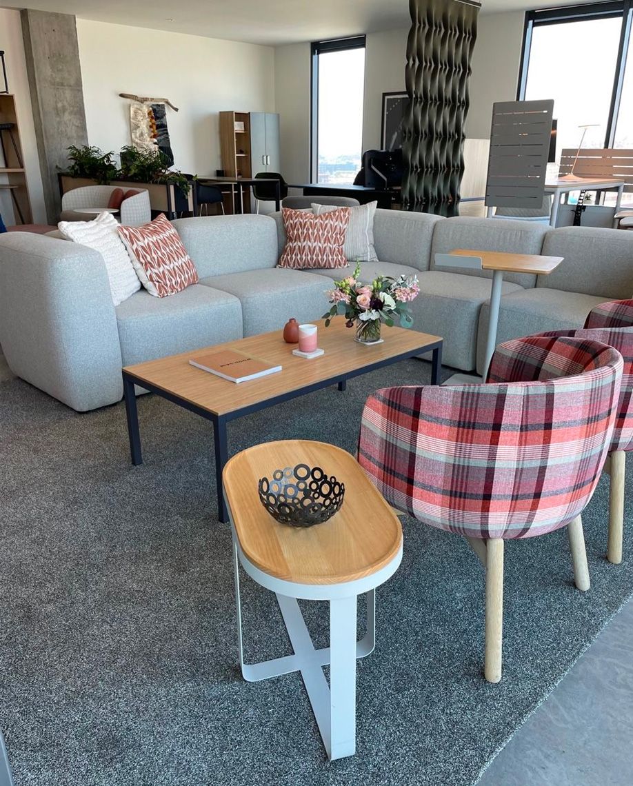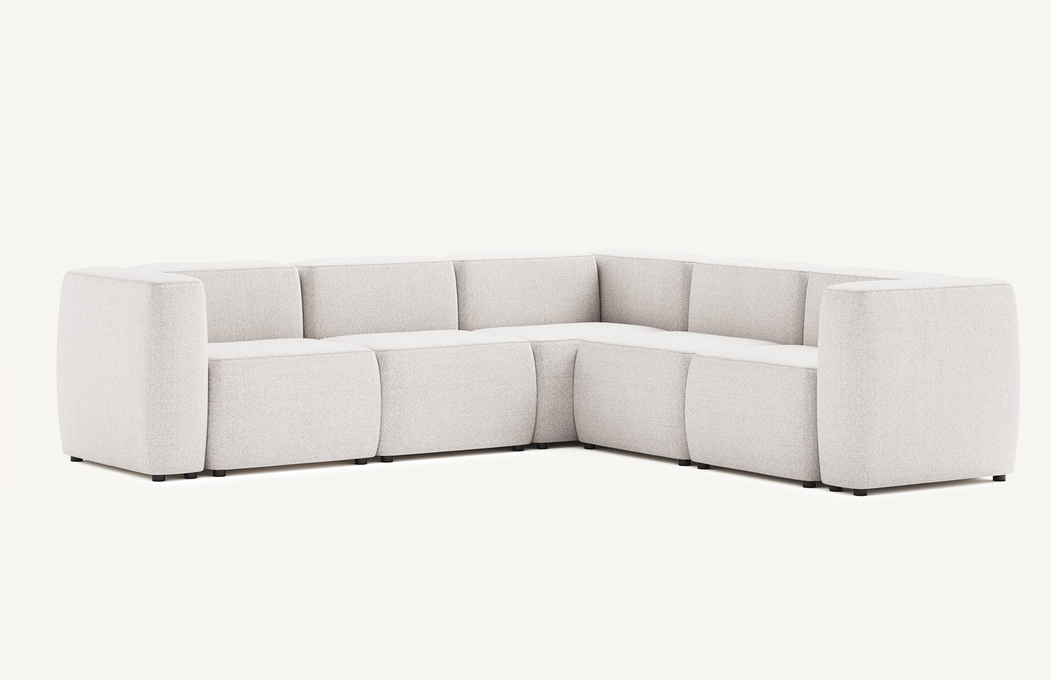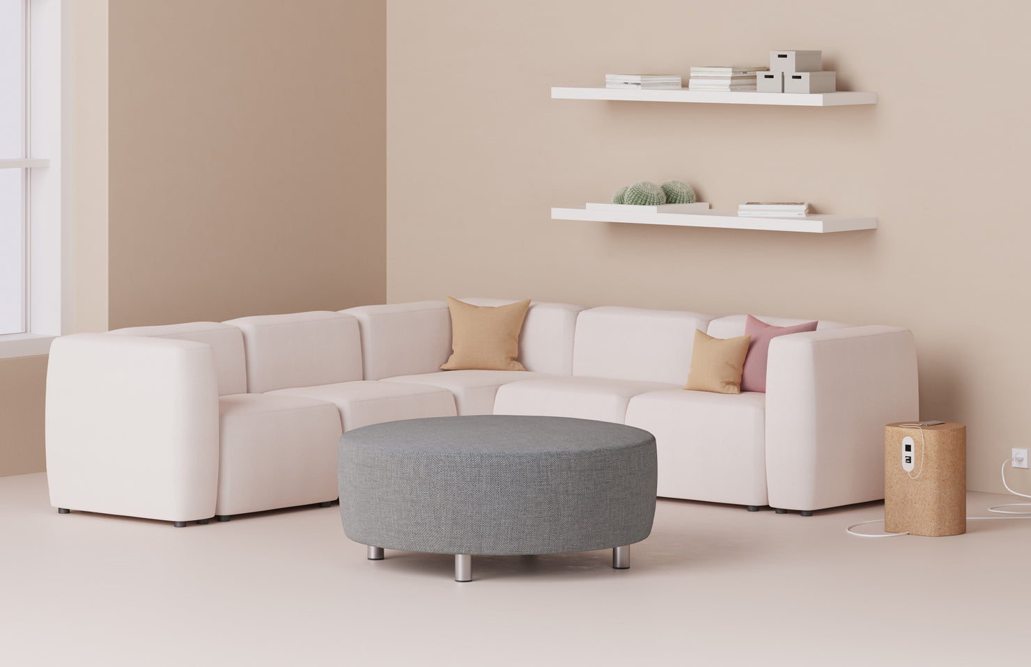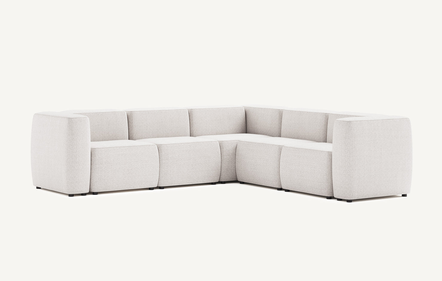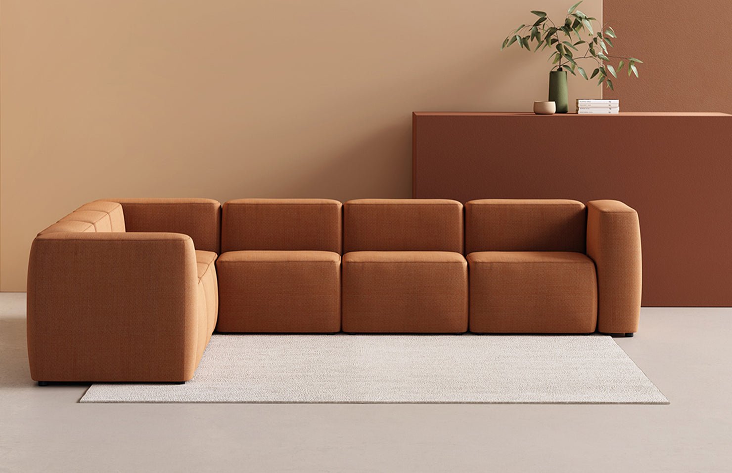A three-seat and two-seat sofa come together to create an unconventional yet traditionally comfortable seating solution.