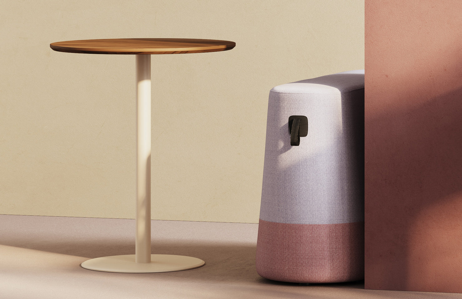 A wood top, powder-coated column base, and sturdy structure make Kona Tables the perfect fit for any kind of space. Featured here in a Round Counter Height.