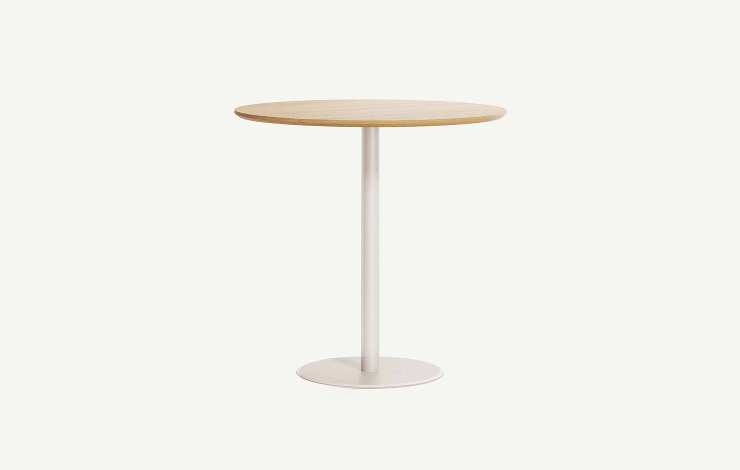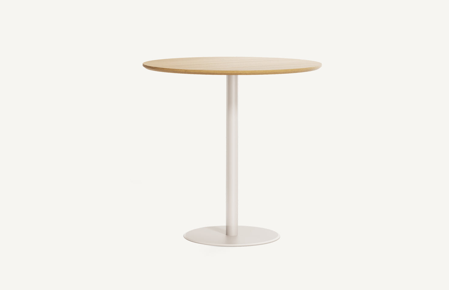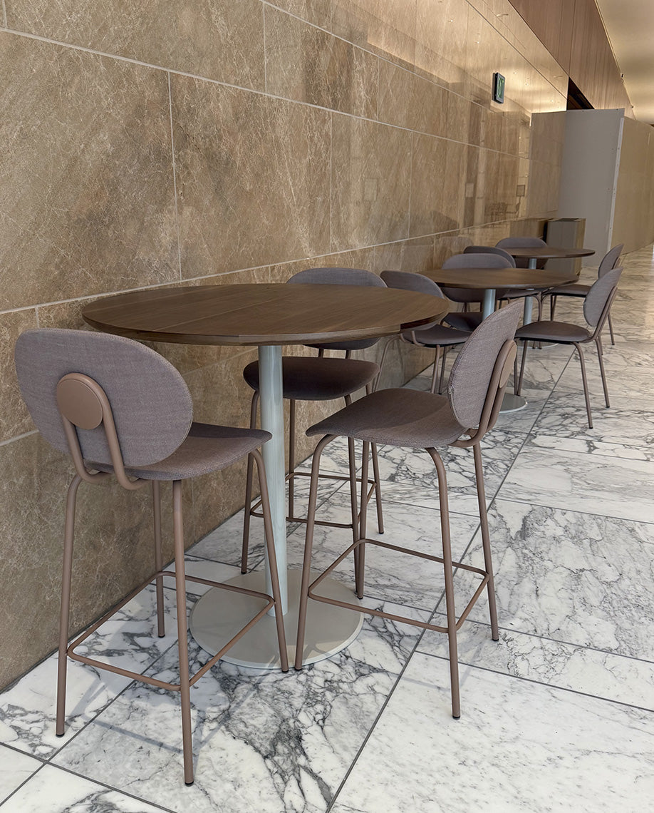 A wood top, powder-coated column base, and sturdy structure make Kona Tables the perfect fit for any kind of space. Featured here in a Round Counter Height.