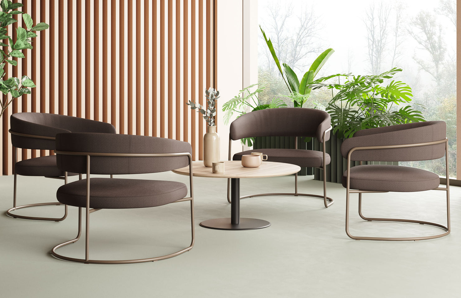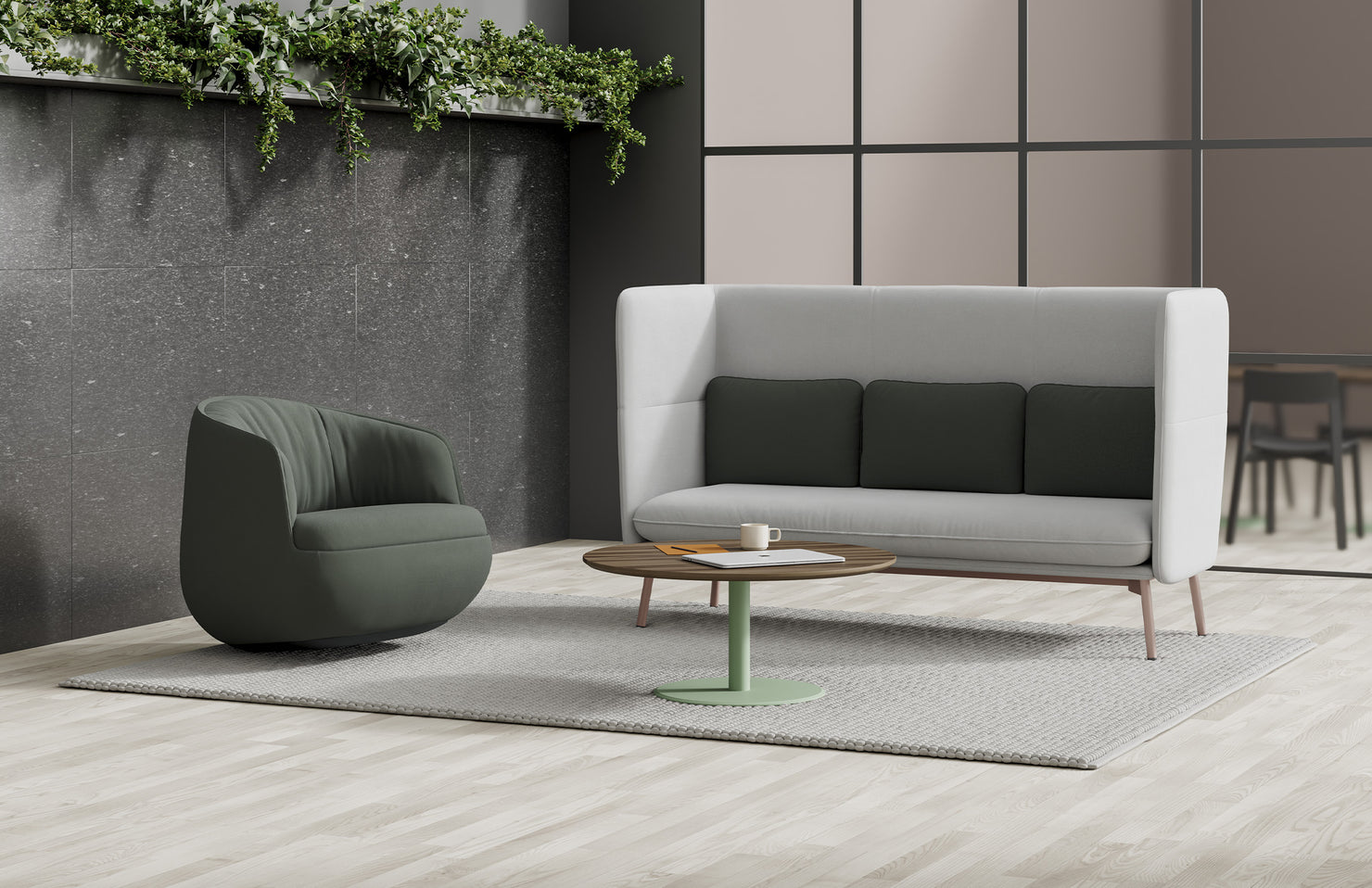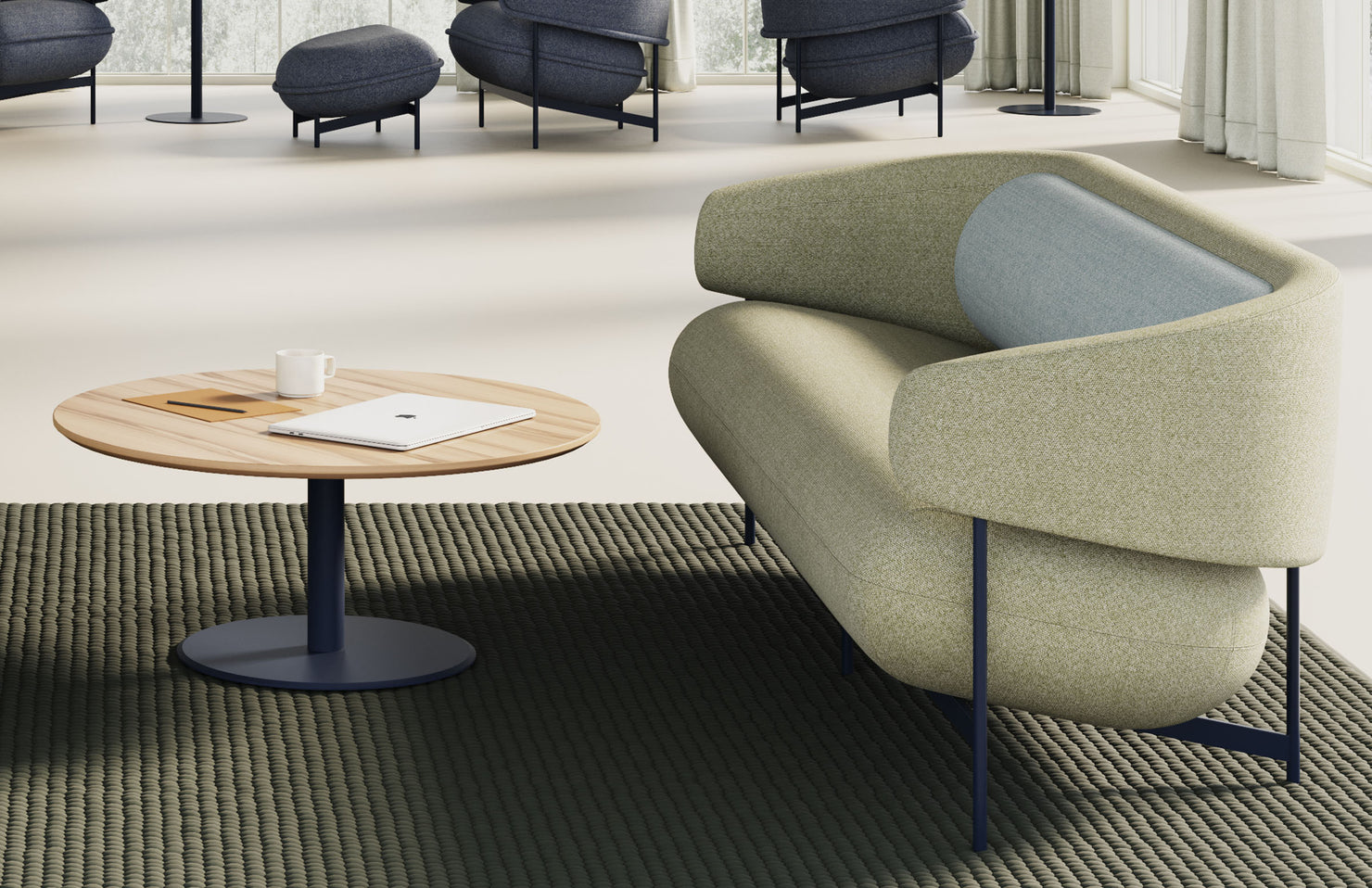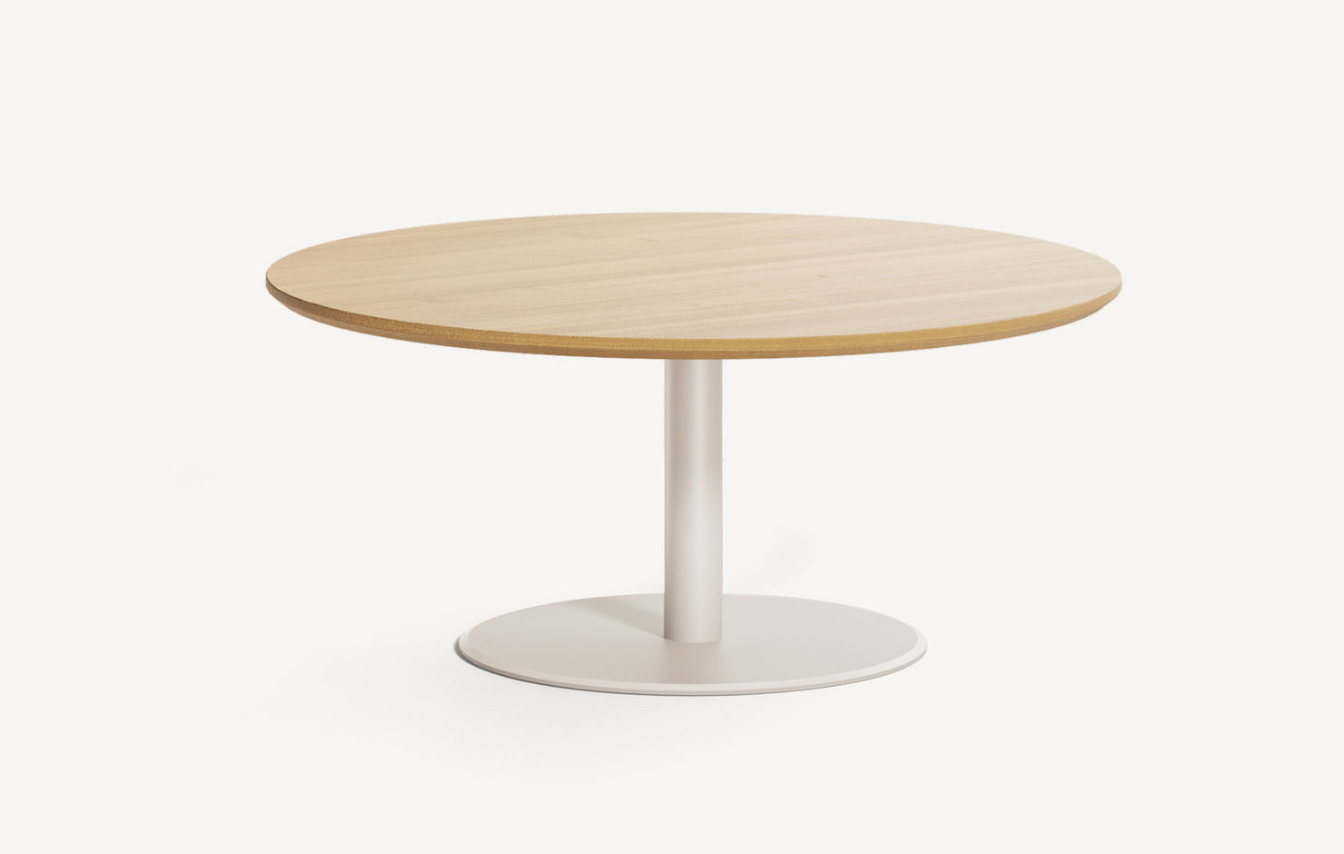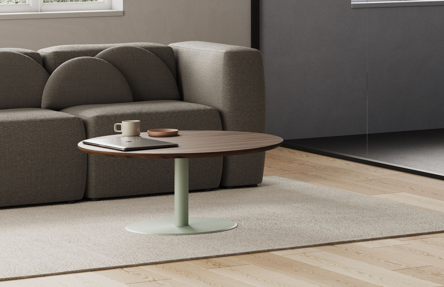 A wood top, powder-coated column base, and sturdy structure make Kona Tables the perfect fit for any kind of space. Featured here in a round, lounge-ready height.