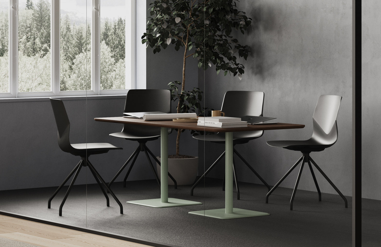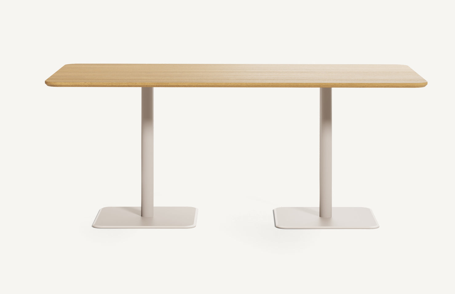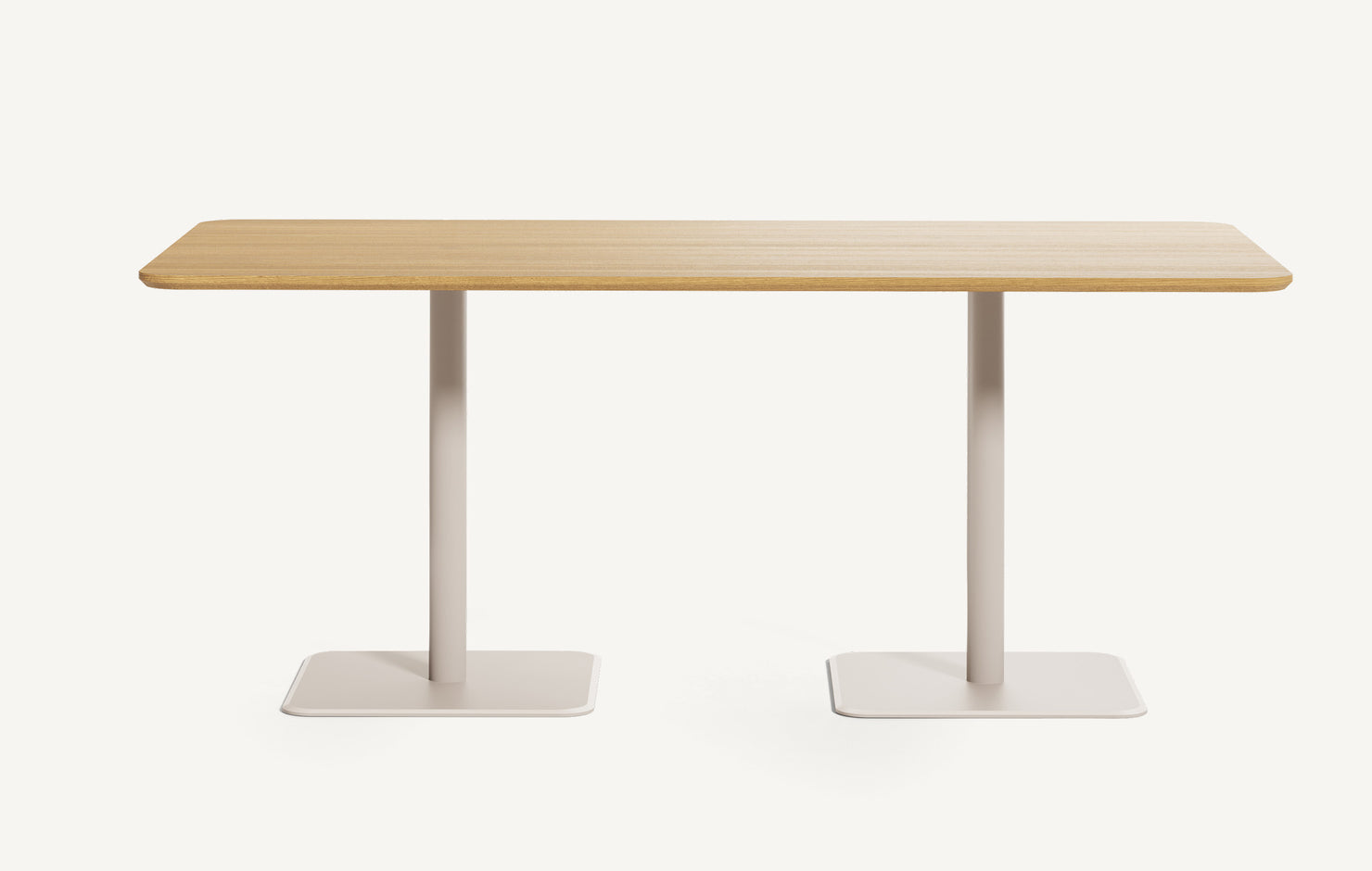 A wood top, powder-coated column base, and sturdy structure make Kona Tables the perfect fit for any kind of space. Featured here in a Rectangular Standard Height.