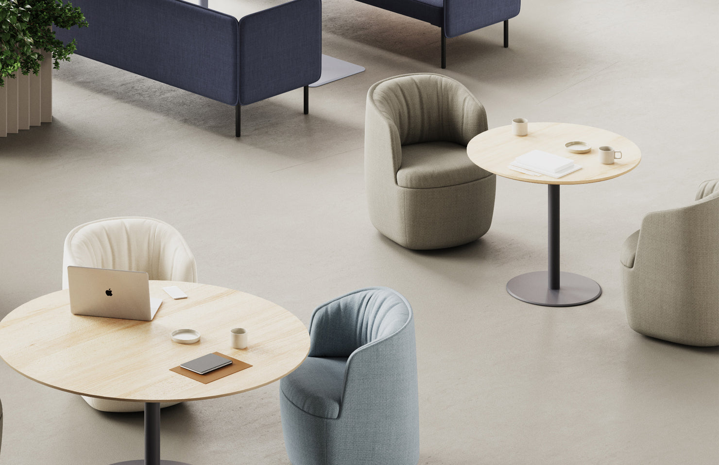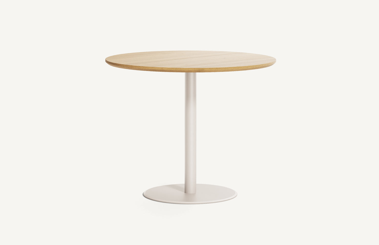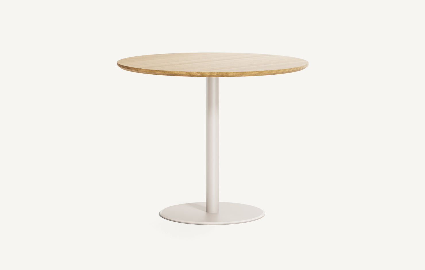 A wood top, powder-coated column base, and sturdy structure make Kona Tables the perfect fit for any kind of space. Featured here in a Round Standard Height.