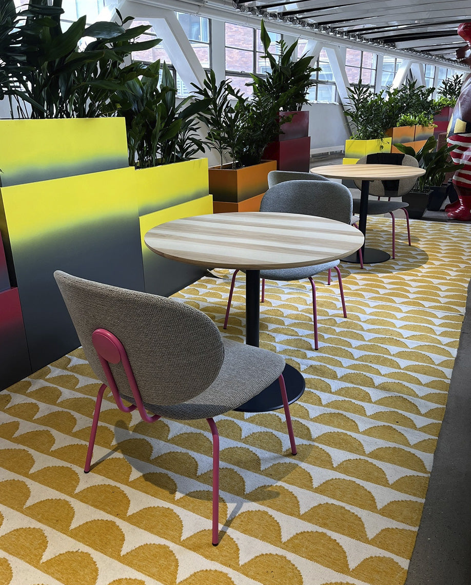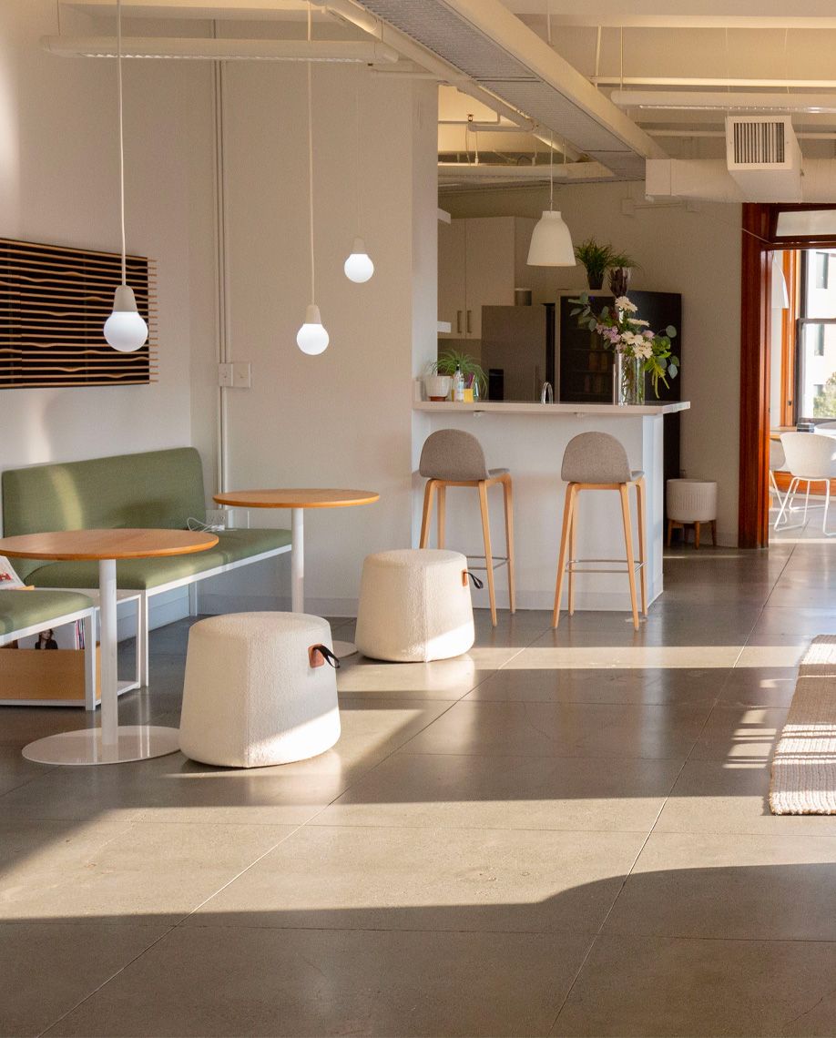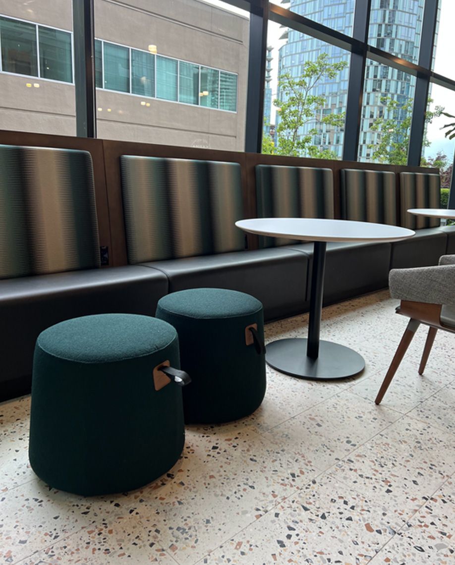 A wood top, powder-coated column base, and sturdy structure make Kona Tables the perfect fit for any kind of space. Featured here in a Round Standard Height.