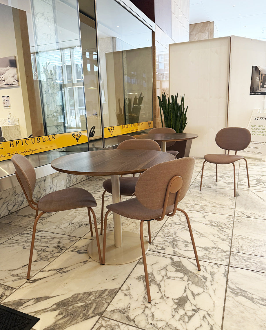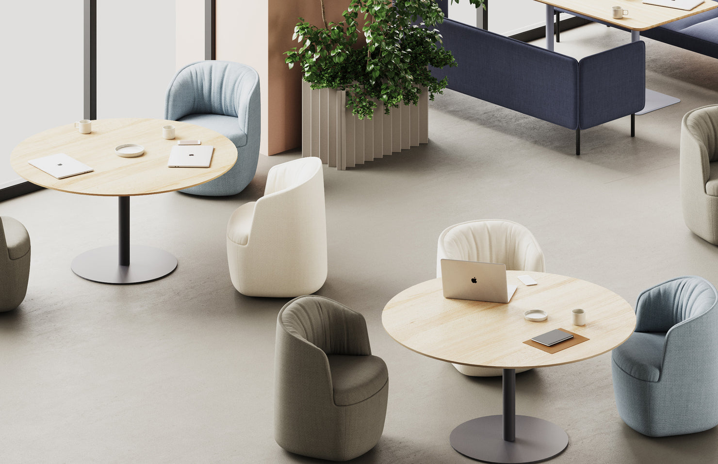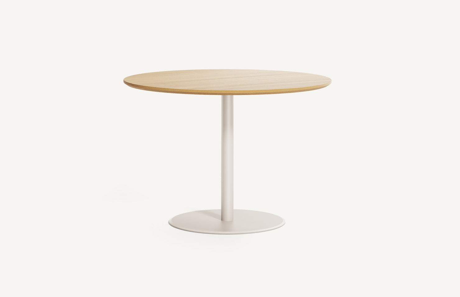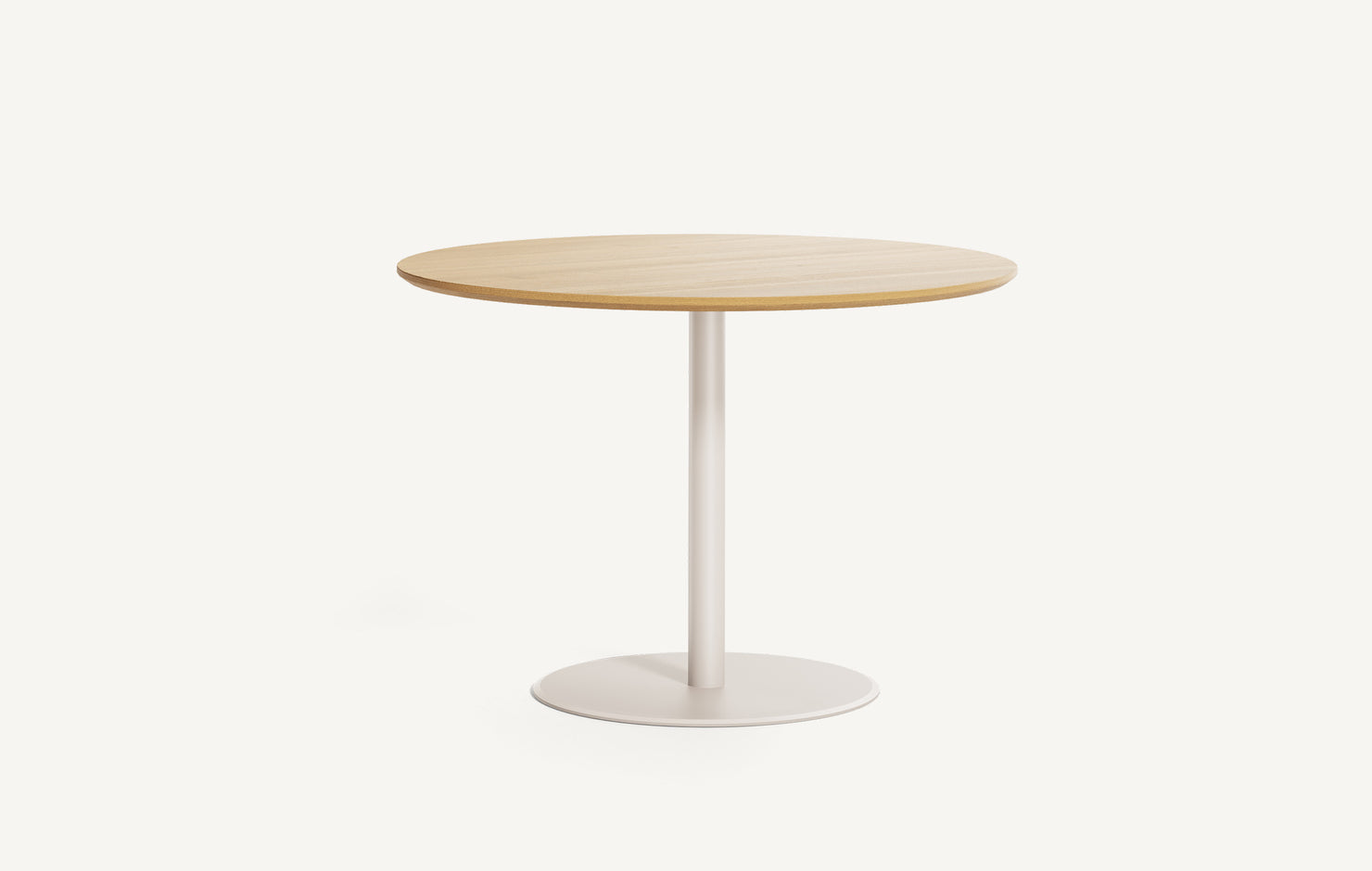 A wood top, powder-coated column base, and sturdy structure make Kona Tables the perfect fit for any kind of space. Featured here in a Round Standard Height.