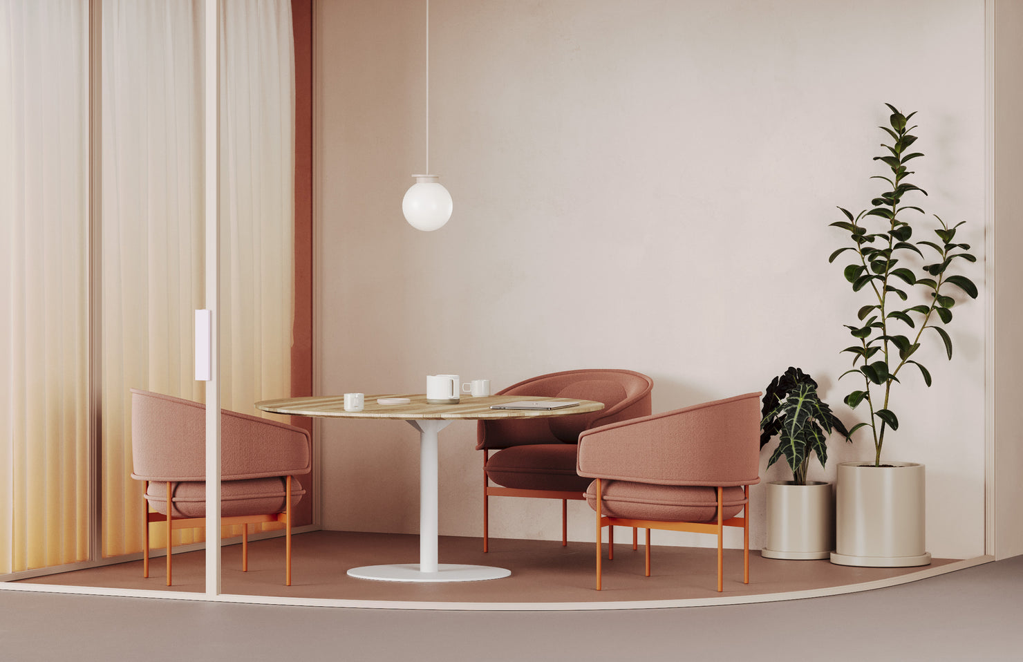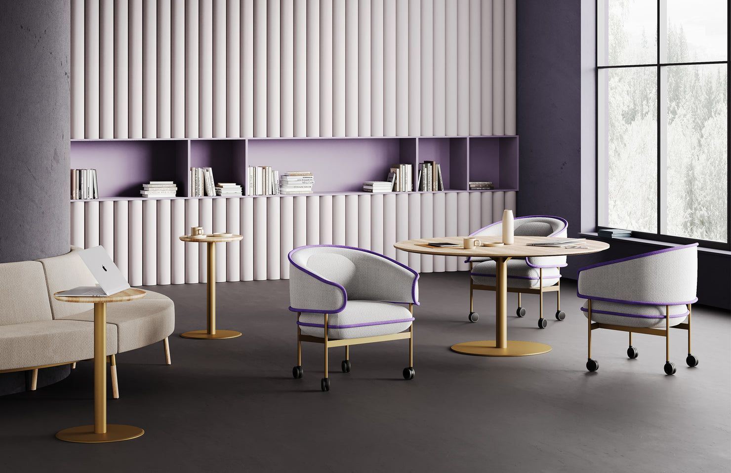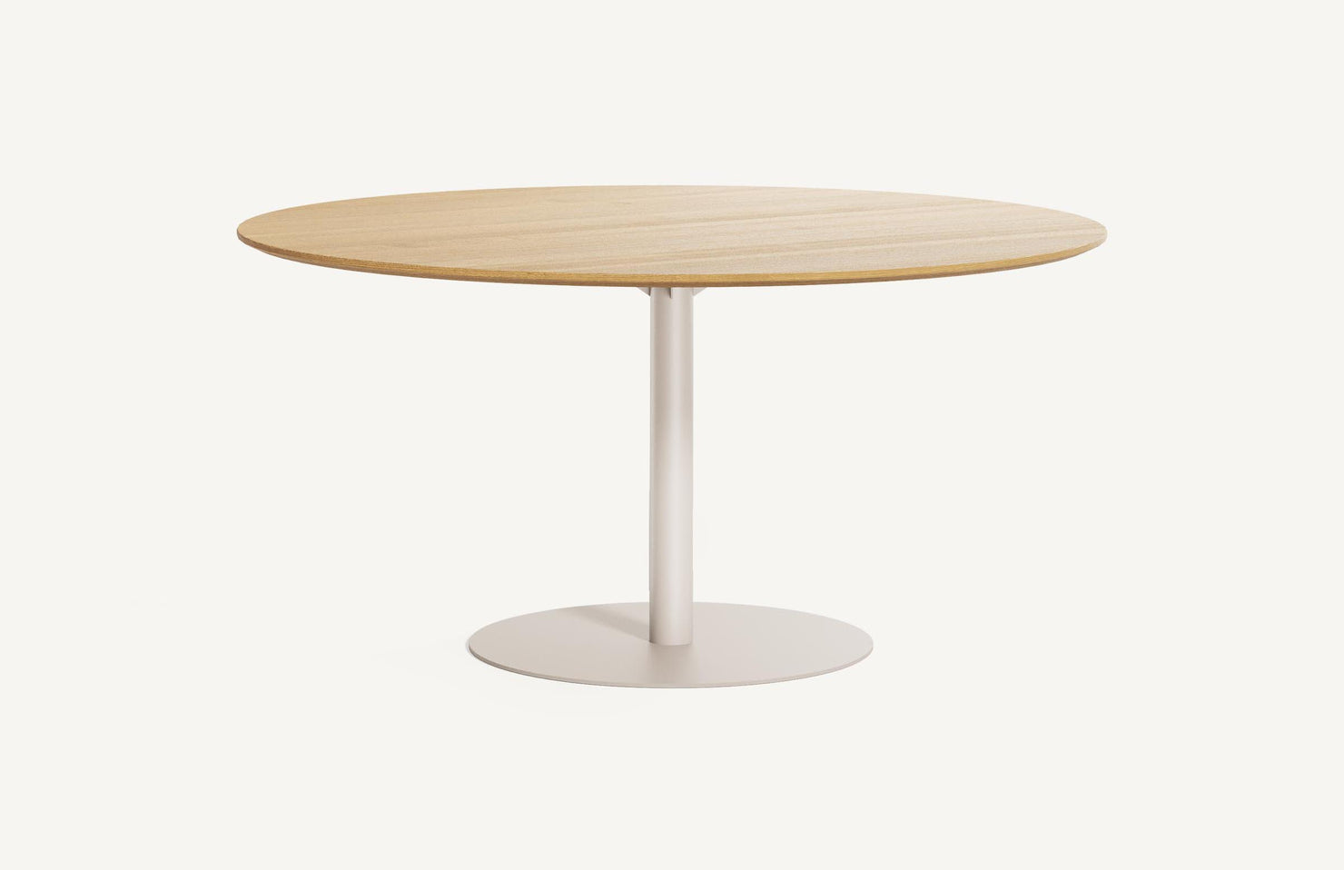 A wood top, powder-coated column base, and sturdy structure make Kona Tables the perfect fit for any kind of space. Featured here in a Round Standard Height.