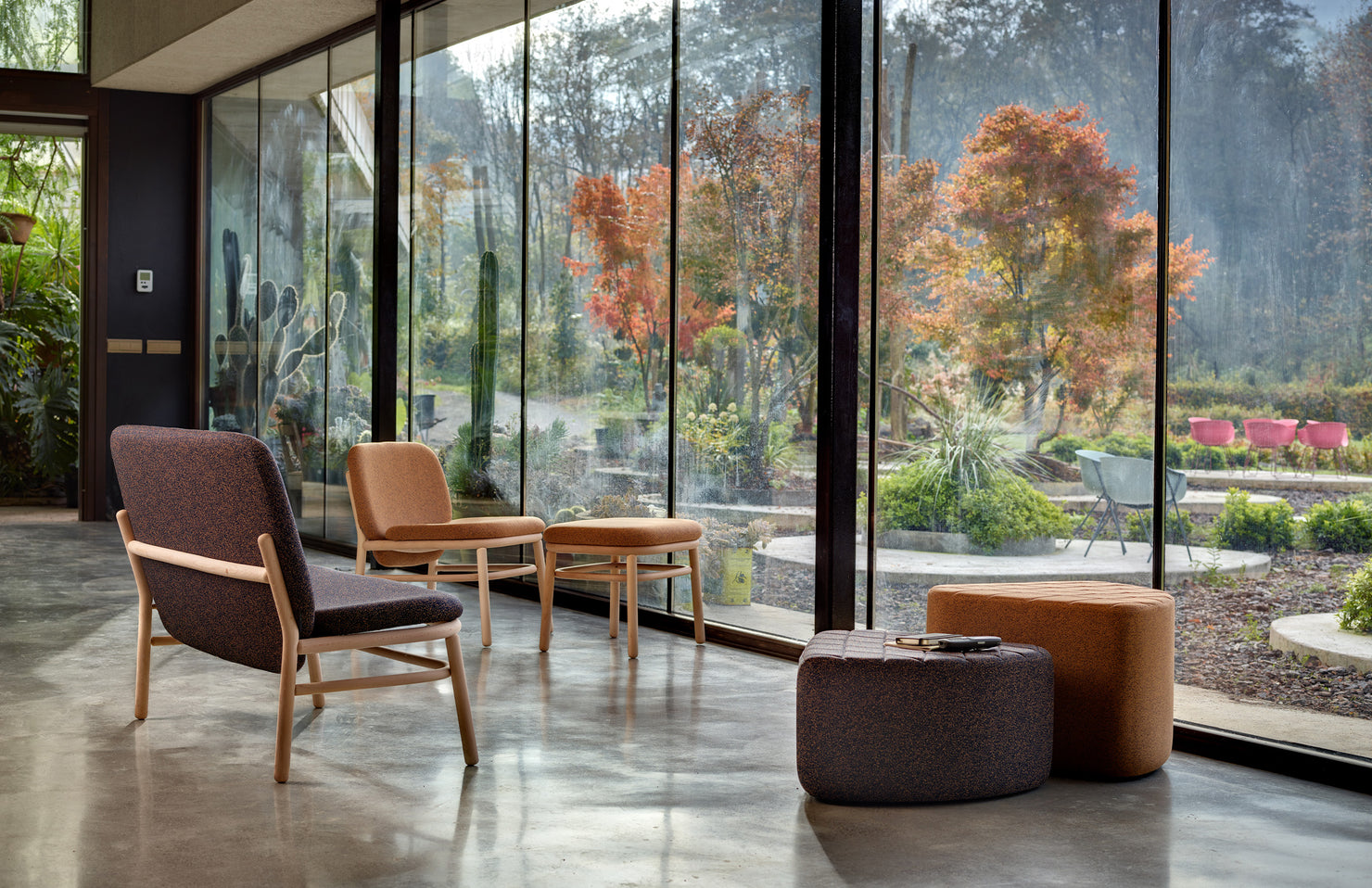 Pairs with Lana seating for a coordinating touchdown seat, footrest, or working accessory. Four wood finish options available.