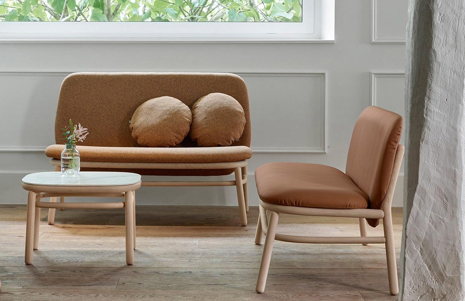 Ideal for hospitality environments and casual workspaces, Lana is a small-scale solution for welcoming lounge settings. Four wood finish options available.