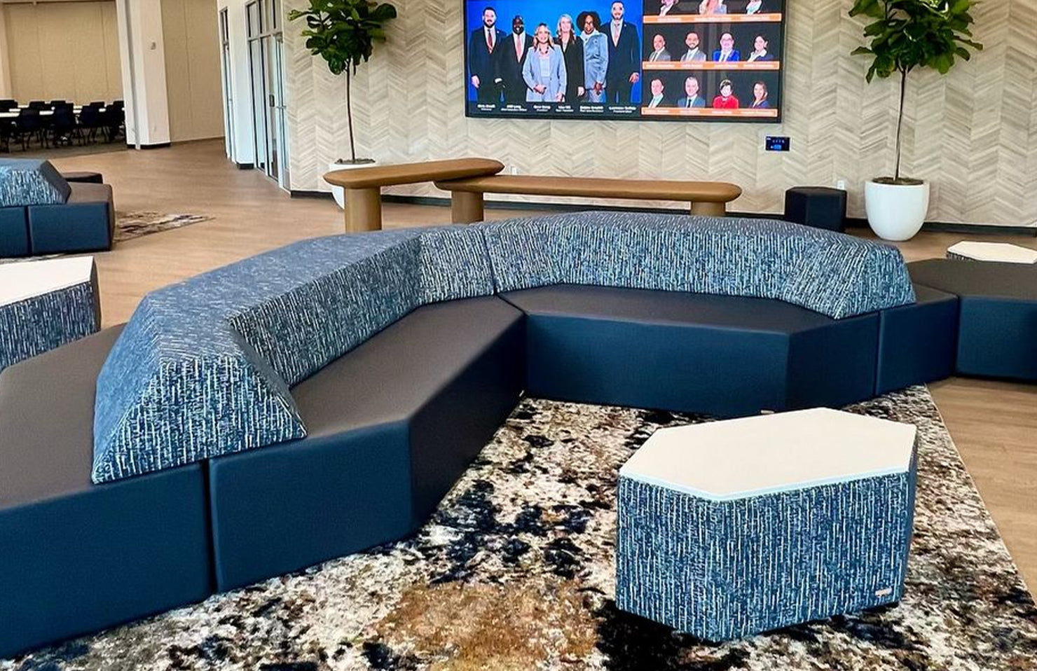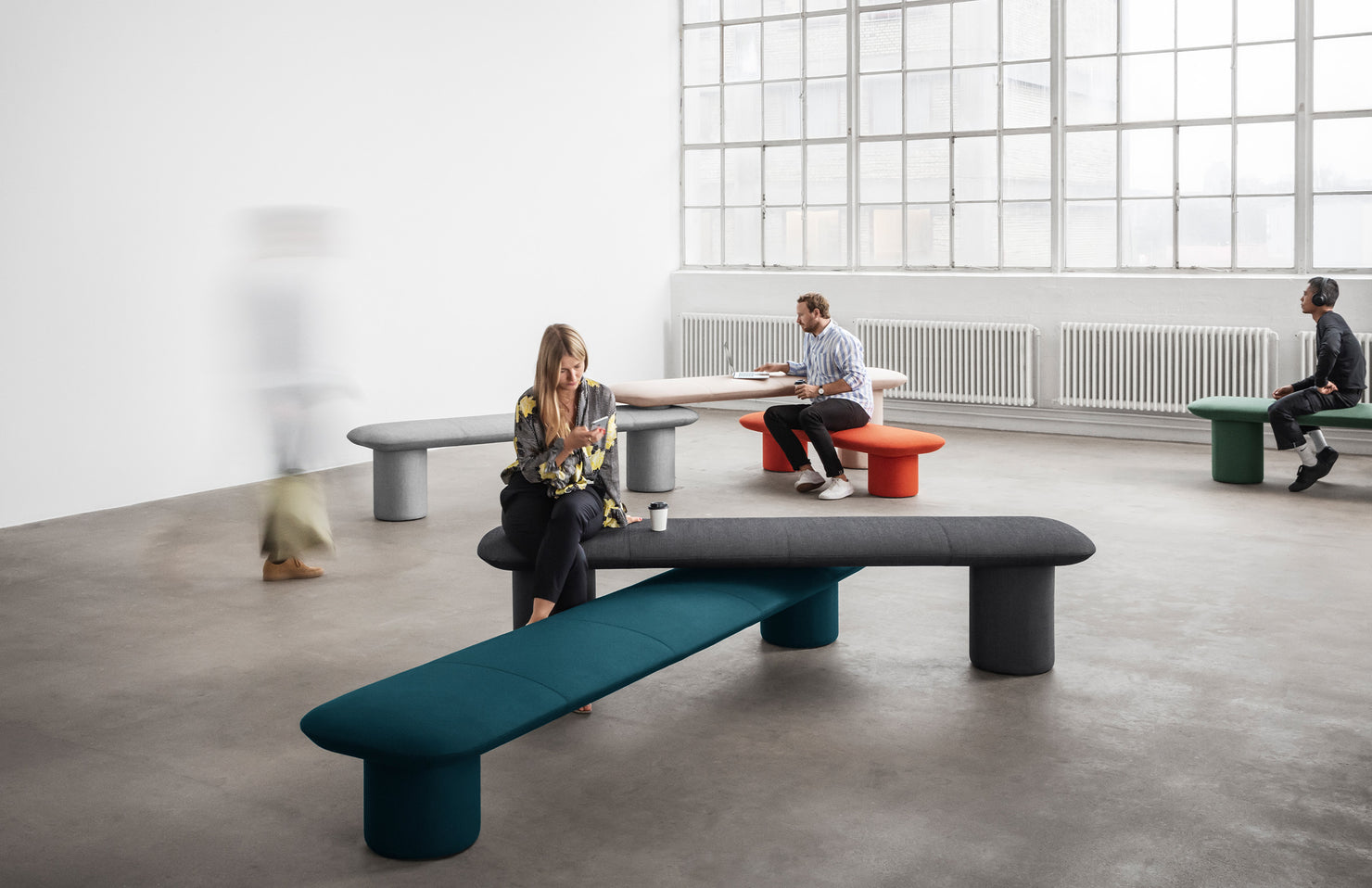 Varying heights, lengths, and connection points of Levels allow these highly configurable pieces to be overlapped and composed in countless combinations to give users options for seating.