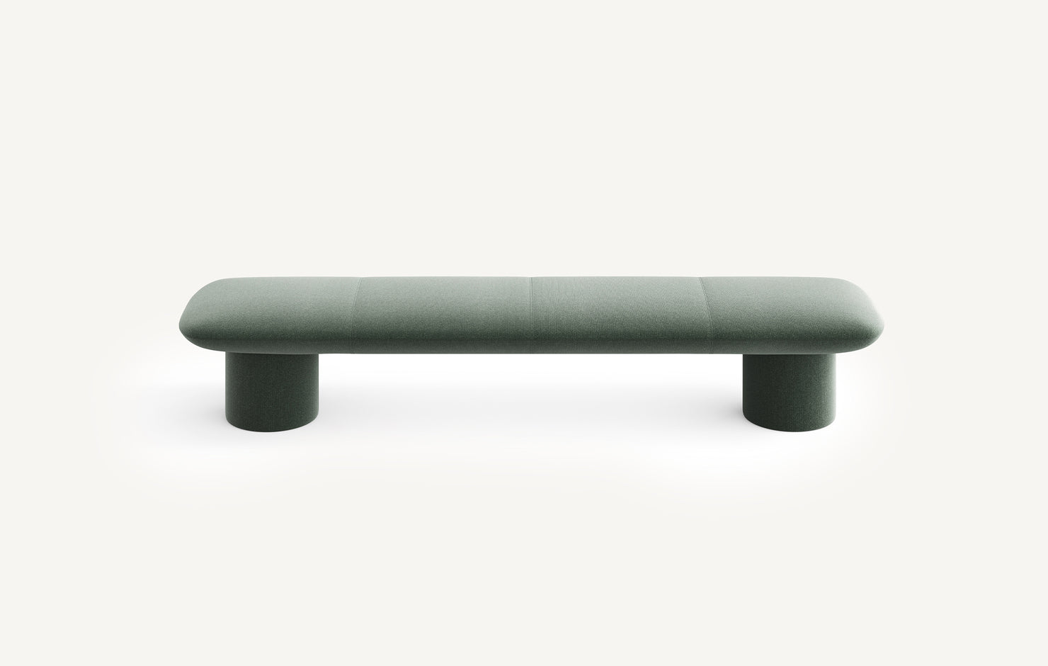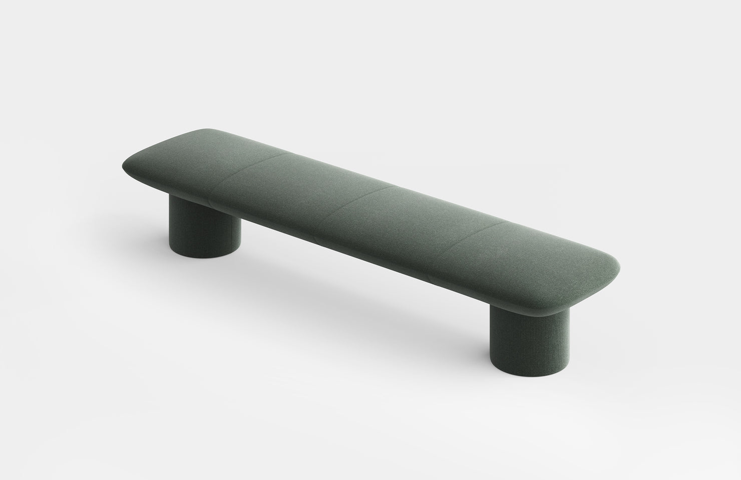 A single low bench rooted with column bases, Levels is ideal for an individual or small group touch-down space.