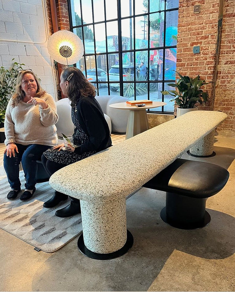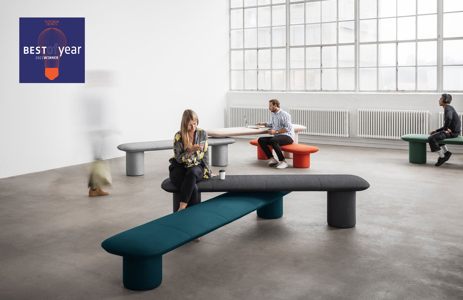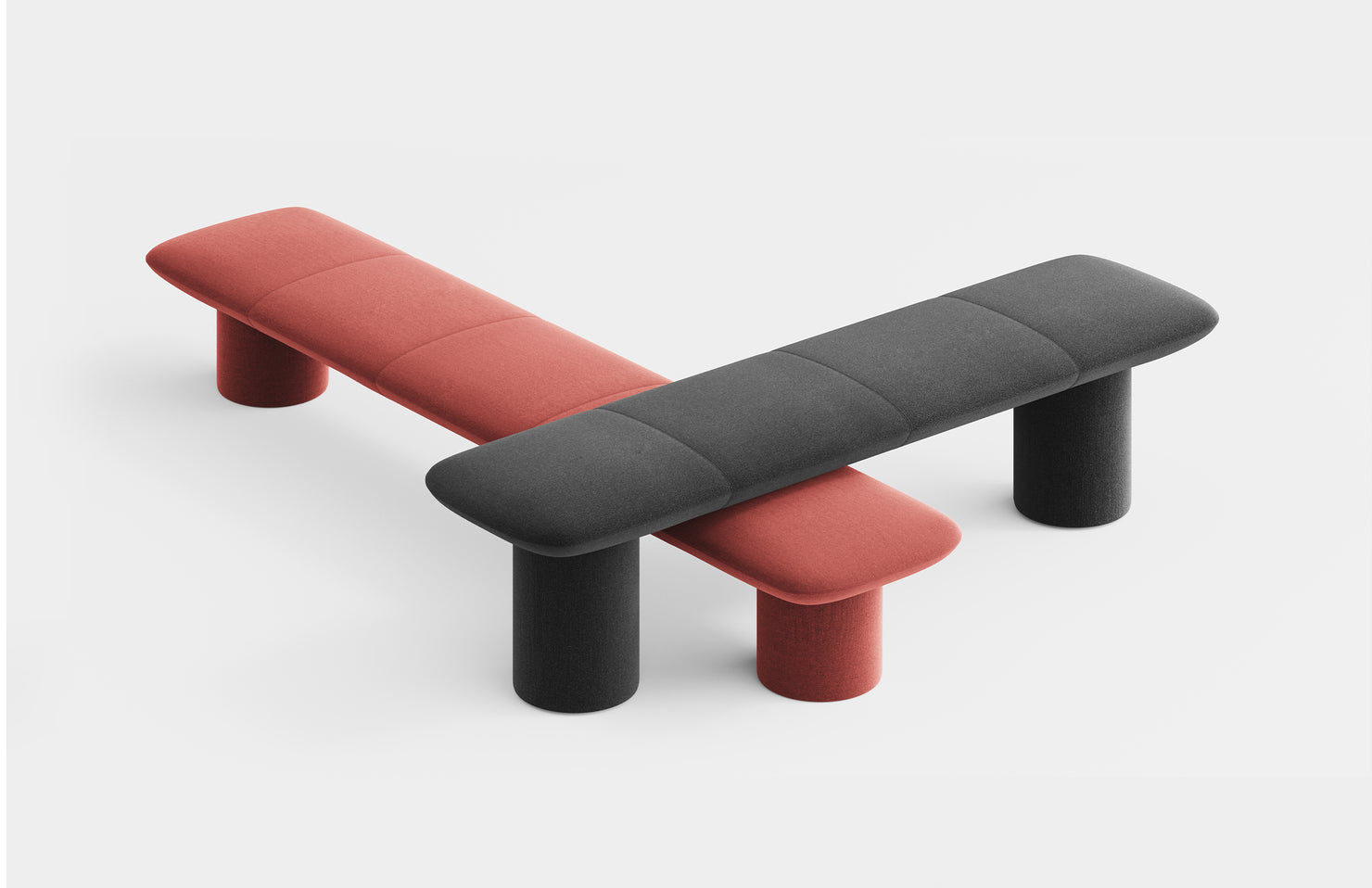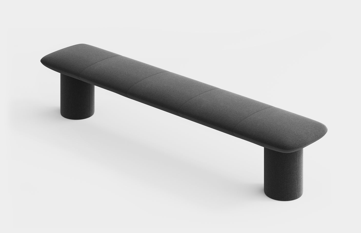 A single low bench rooted with column bases, Levels is ideal for an individual or small group touch-down space.