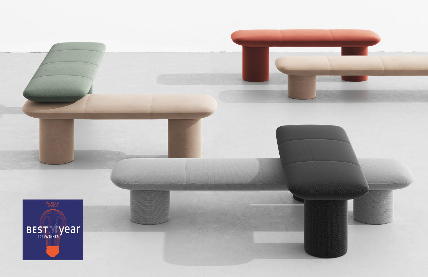 A single low bench rooted with column bases, Levels is ideal for an individual or small group touch-down space.
