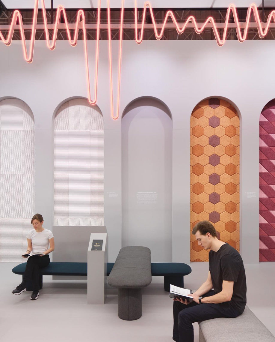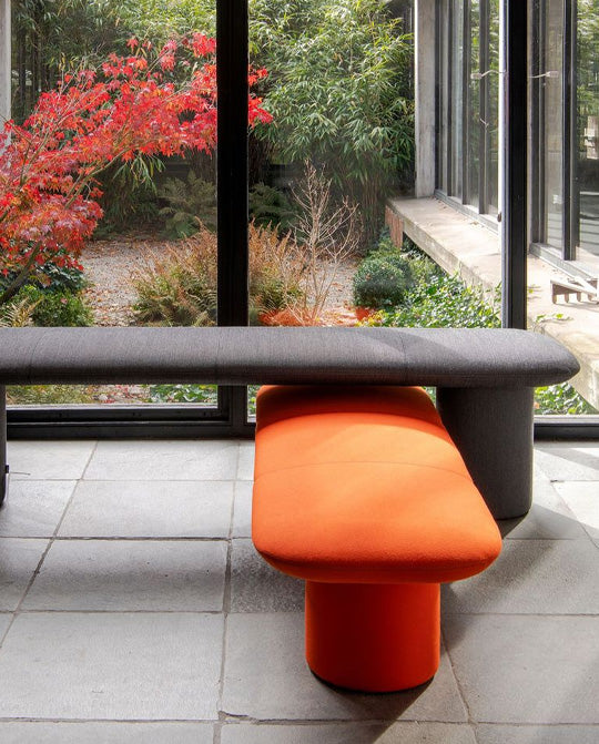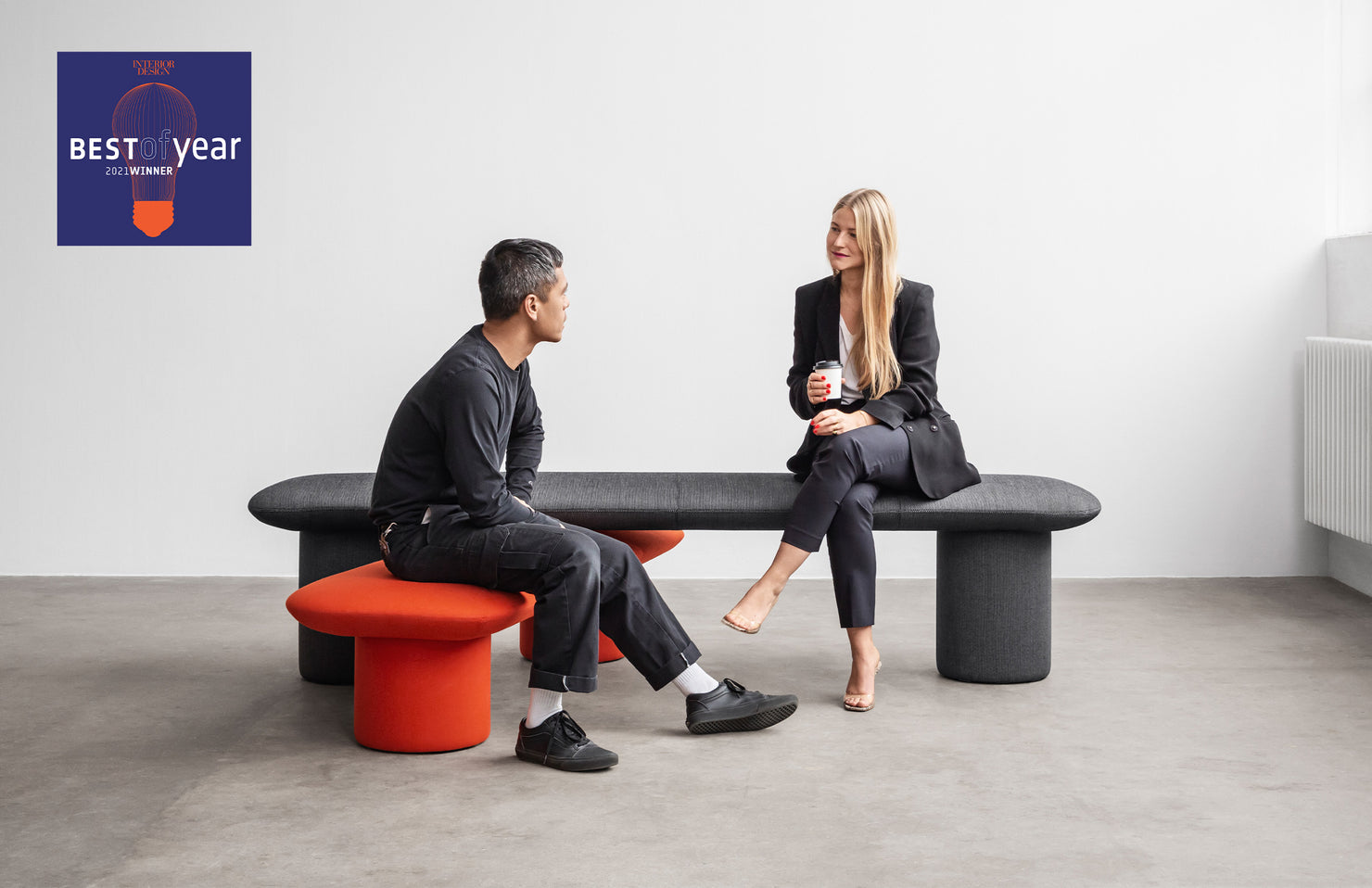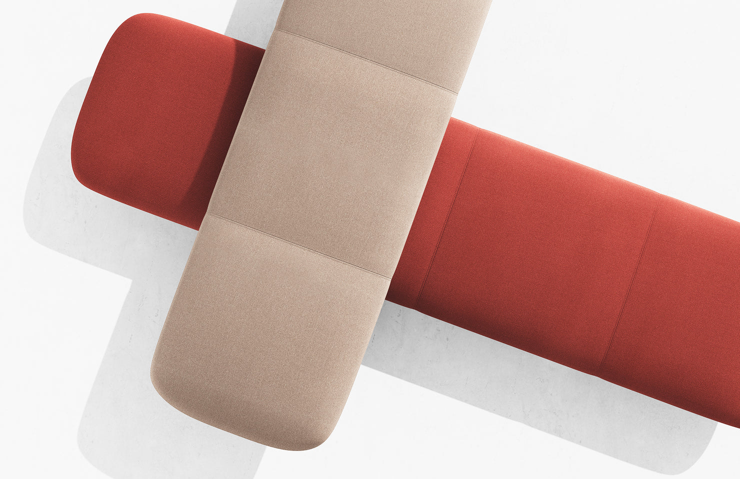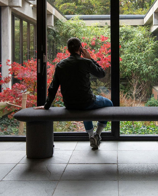 A single low bench rooted with column bases, Levels is ideal for an individual or small group touch-down space.