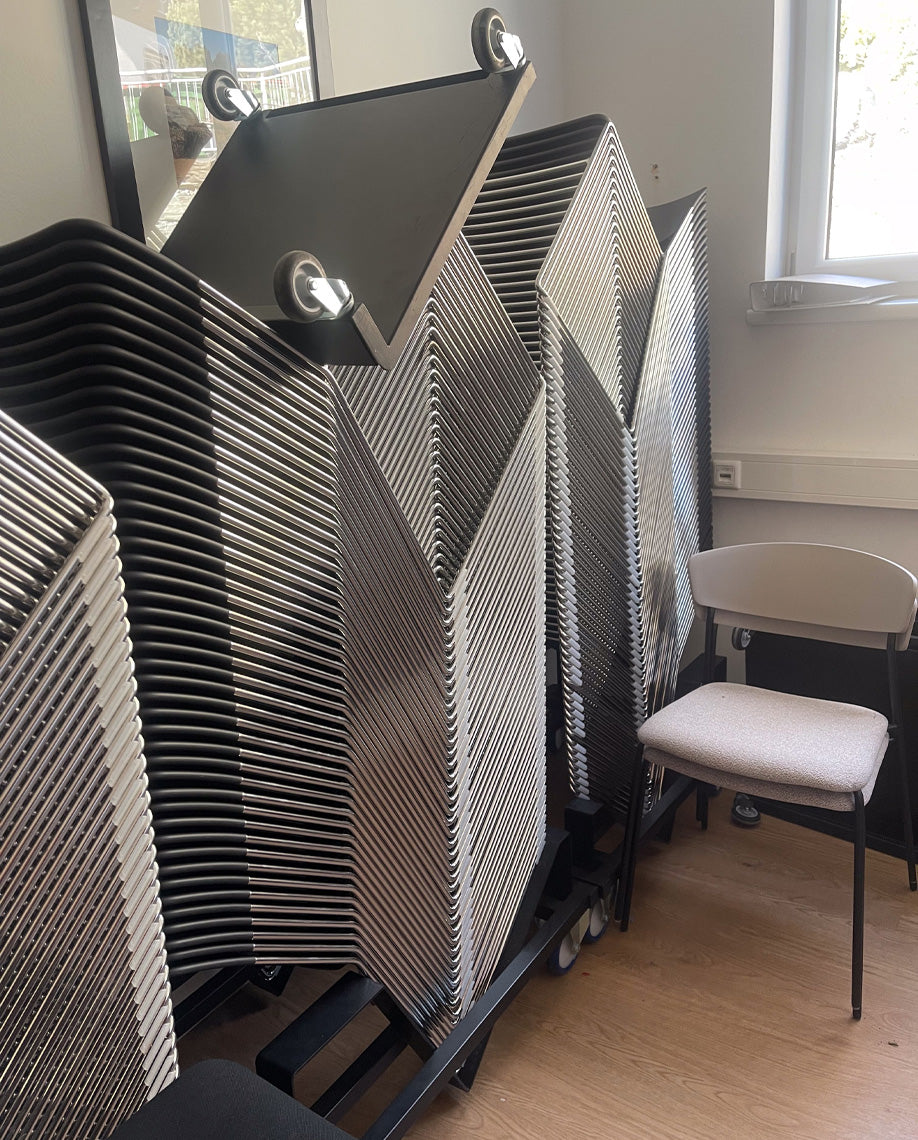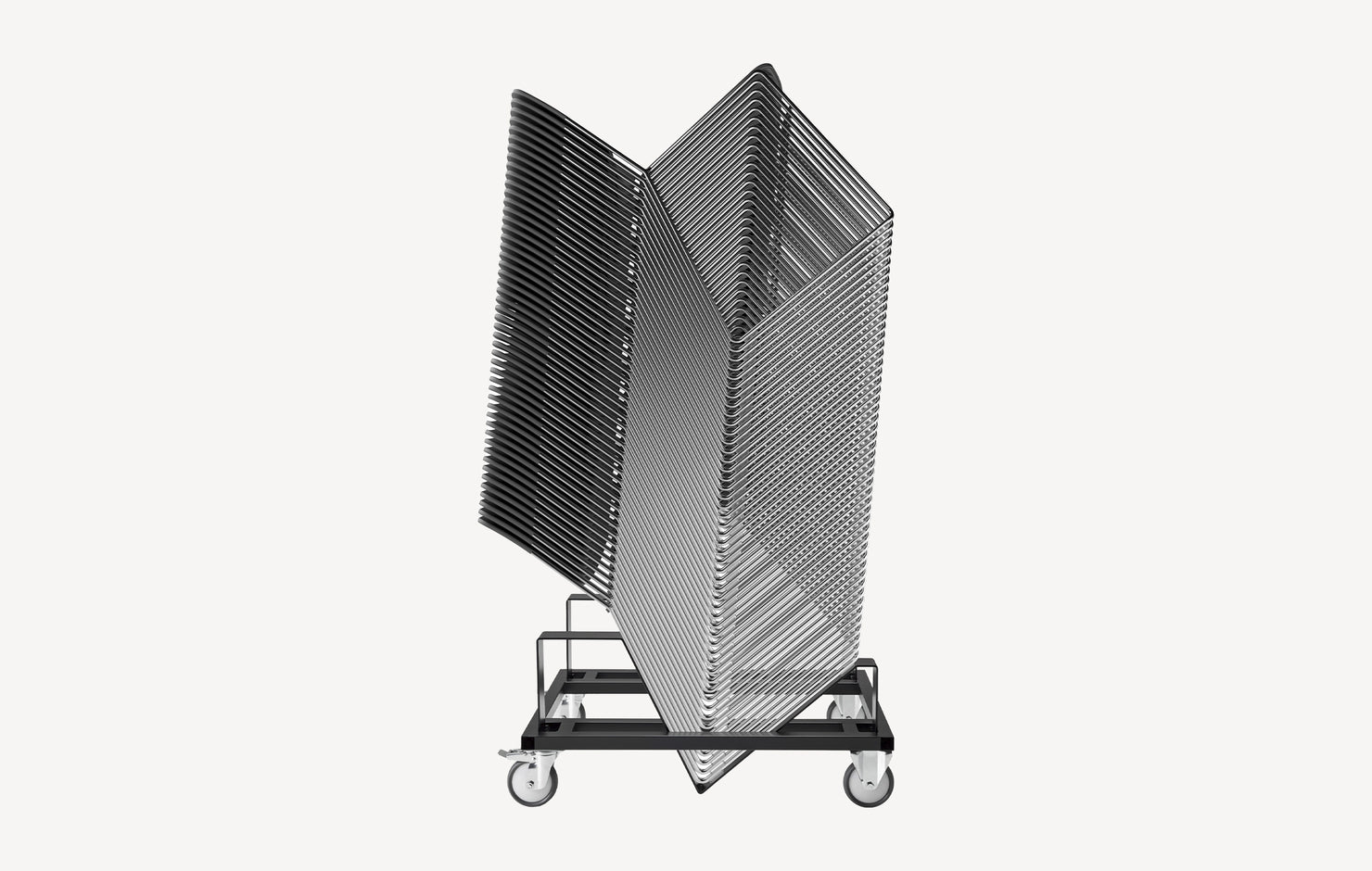 The High Capacity Trolley enables efficient transport and storage of up to 60 stacked chairs, ensuring easy mobility, quick setup, and maximum space optimization.