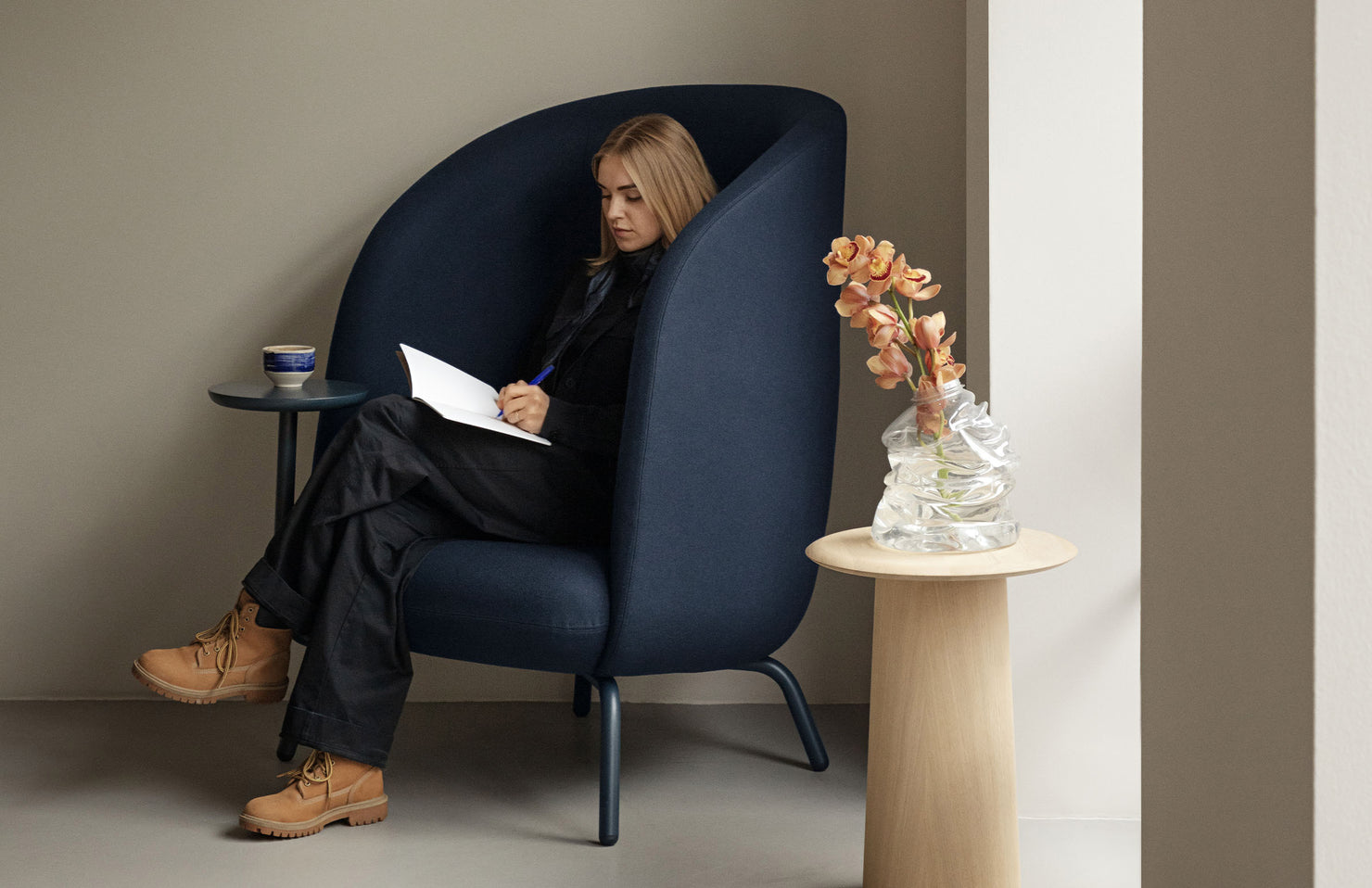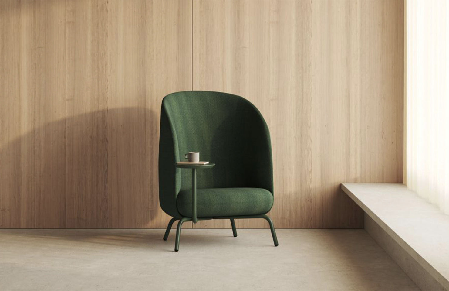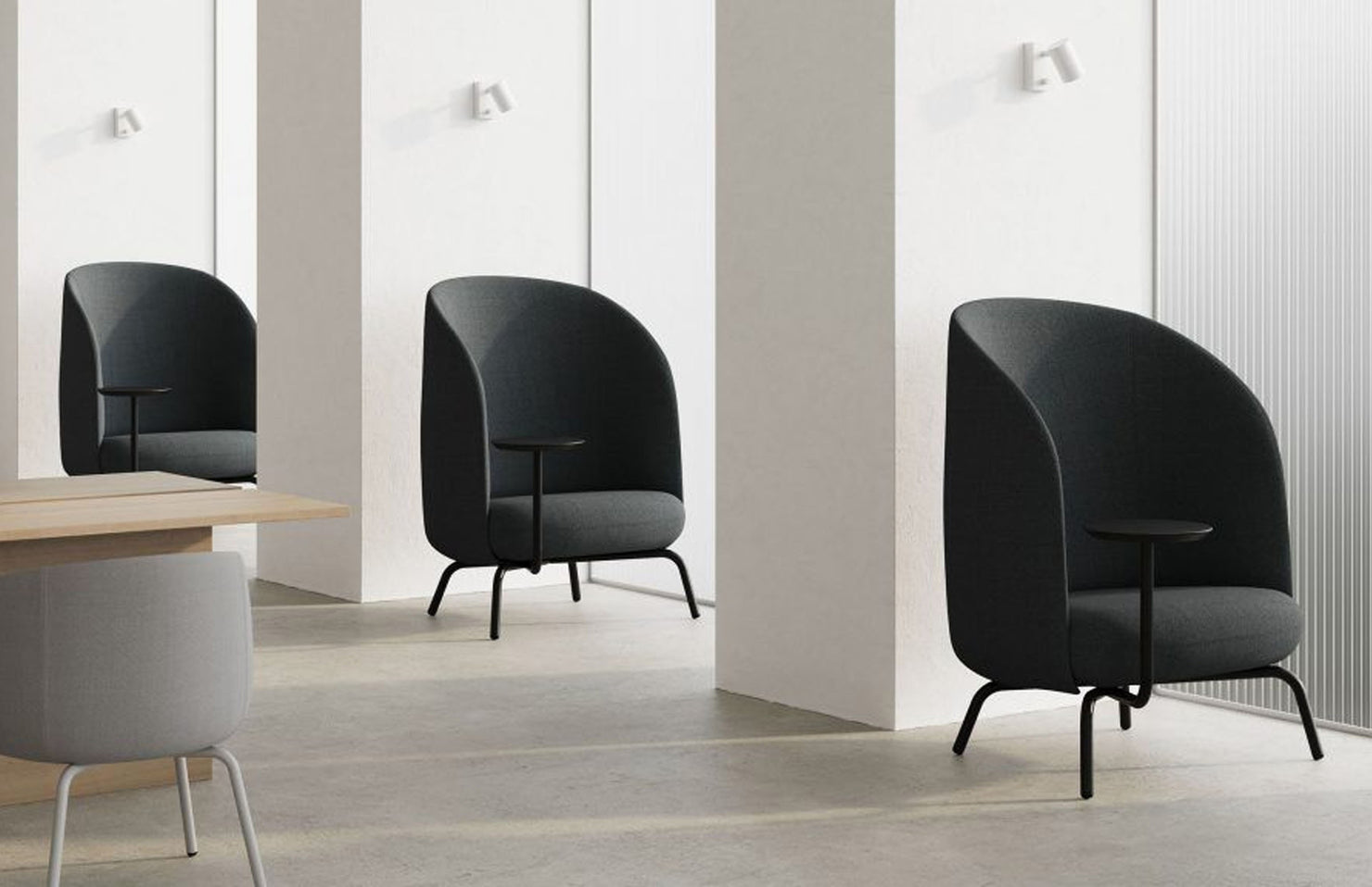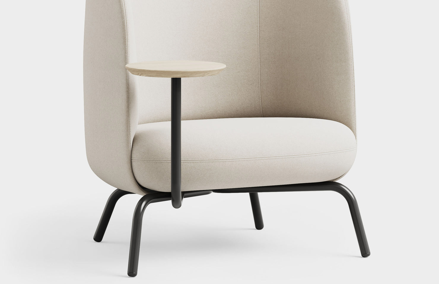 A modern, high back open design that gives the user privacy and peace of mind, even in busy public areas. The integrated table takes this cozy place to nest to new heights with added productivity.