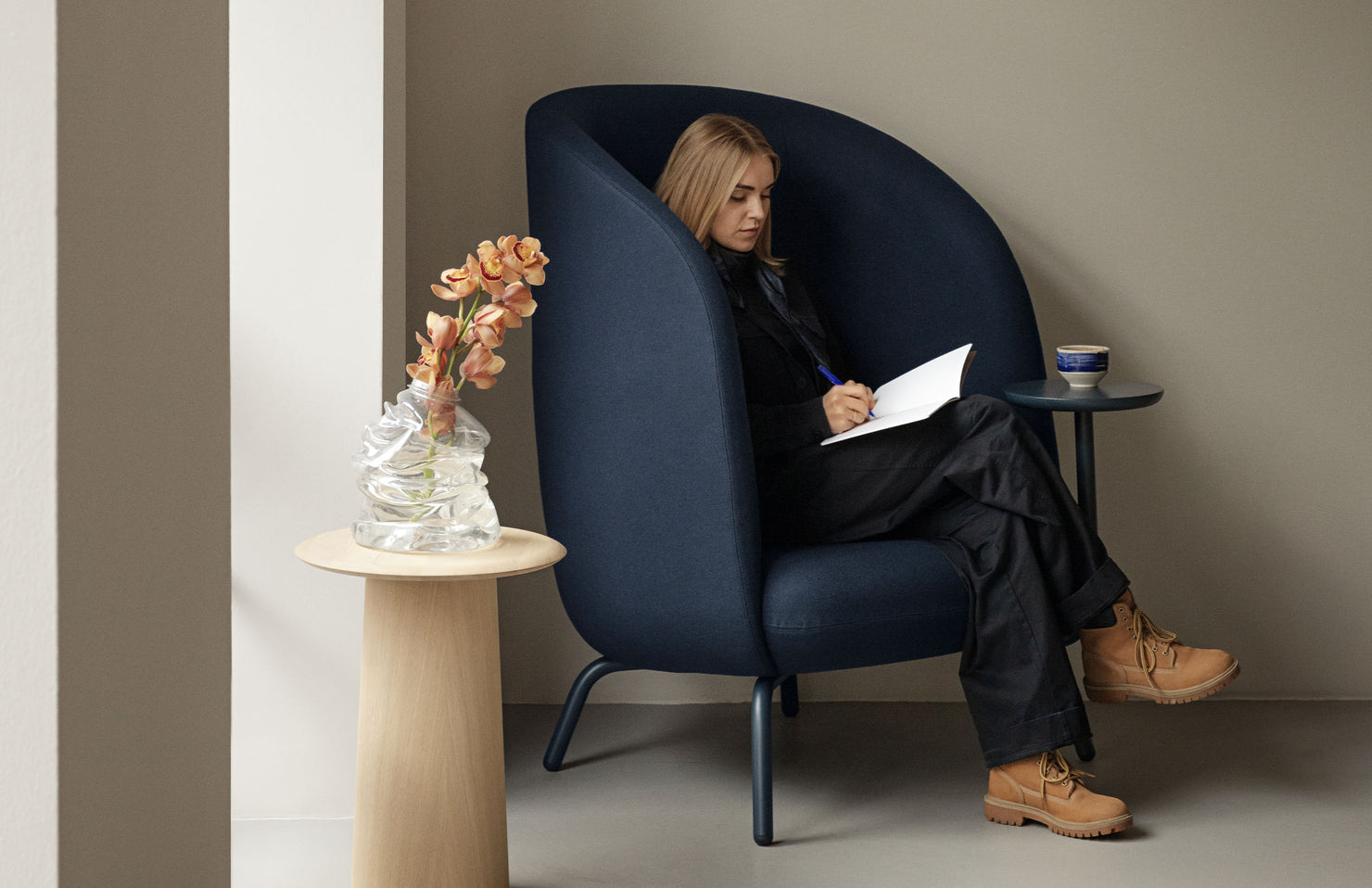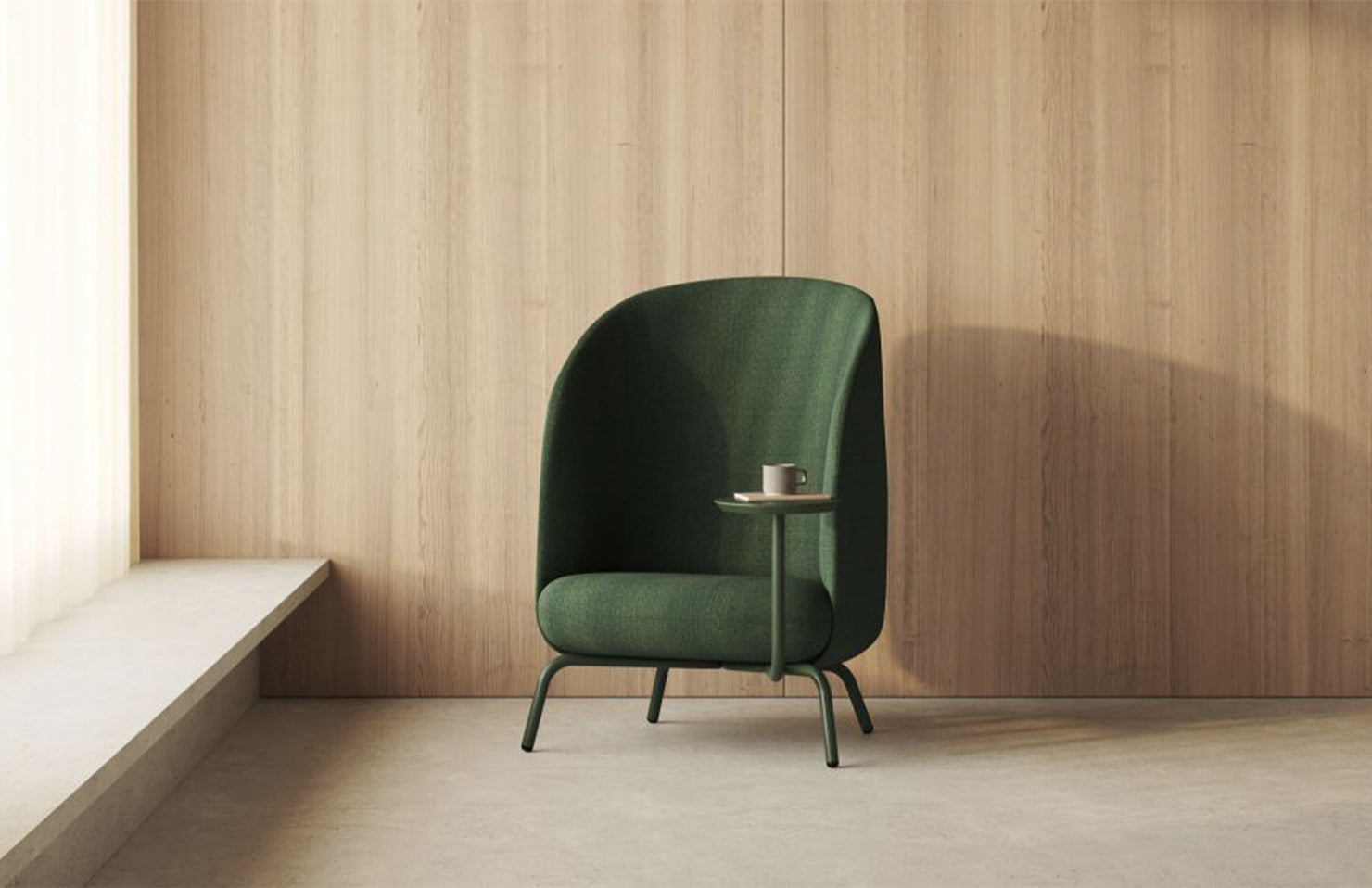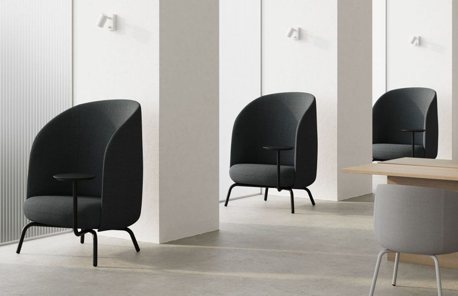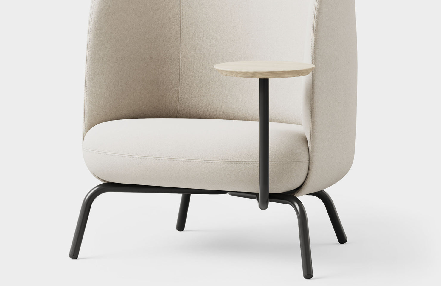 A modern, high back open design that gives the user privacy and peace of mind, even in busy public areas. The integrated table takes this cozy place to nest to new heights with added productivity.