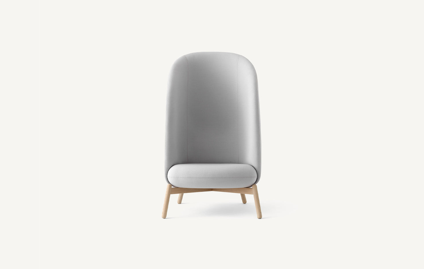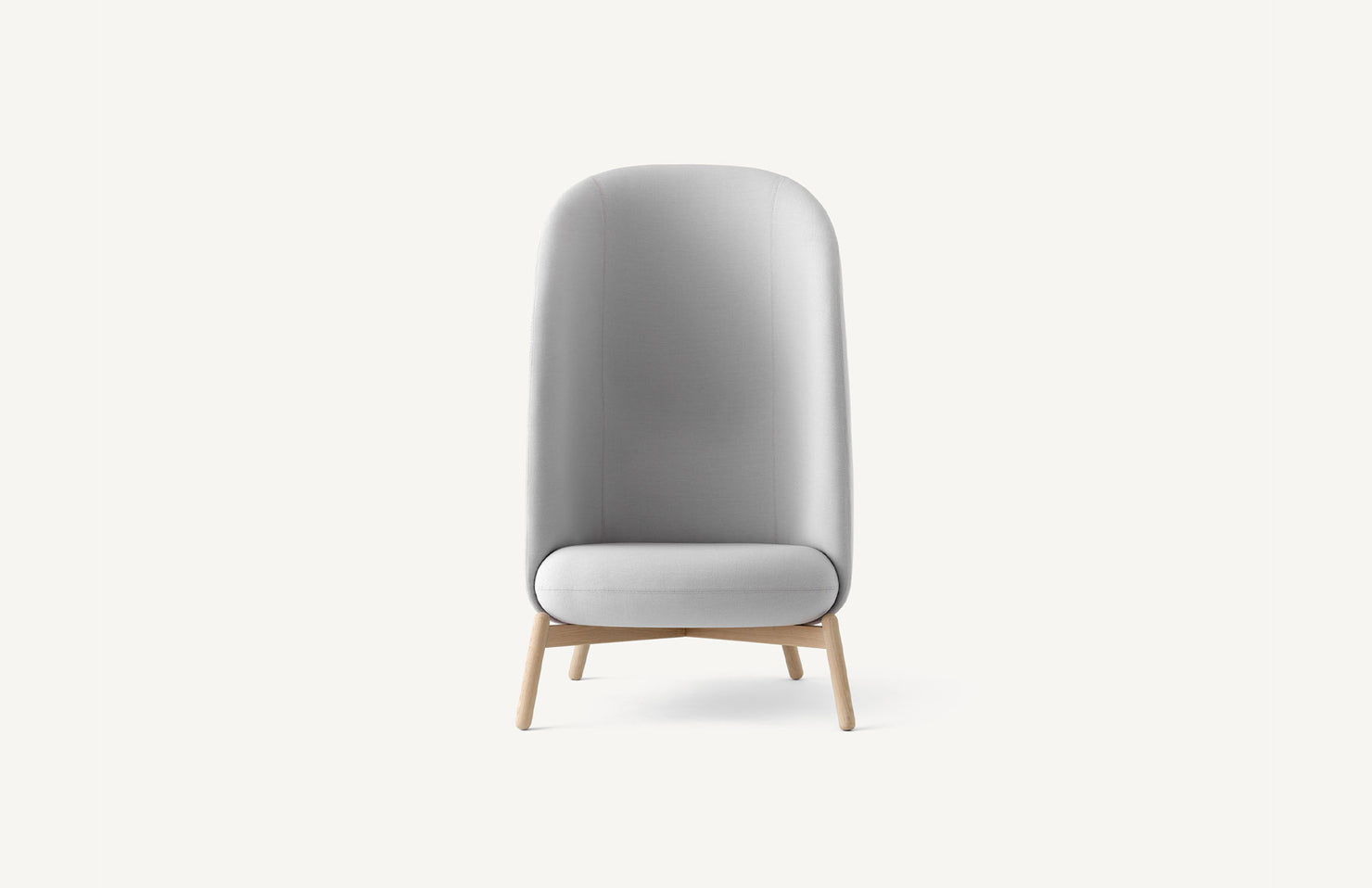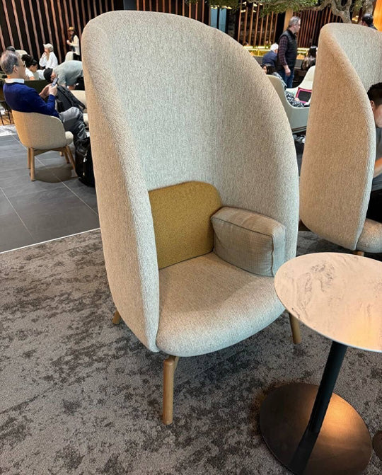A dramatic, high-back lounge seat that surrounds a user with a private and serene space to focus or relax.