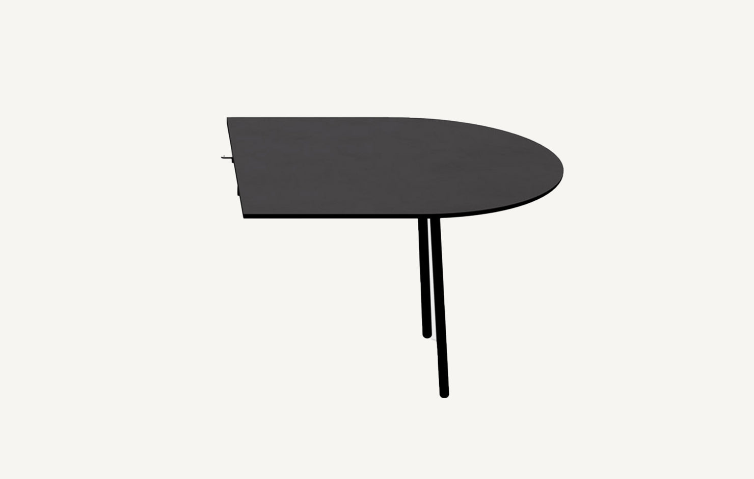 The wall-mounted end module to a modular table system that allows for both linear and curved configurations. Size and shape options are endless with this collection.