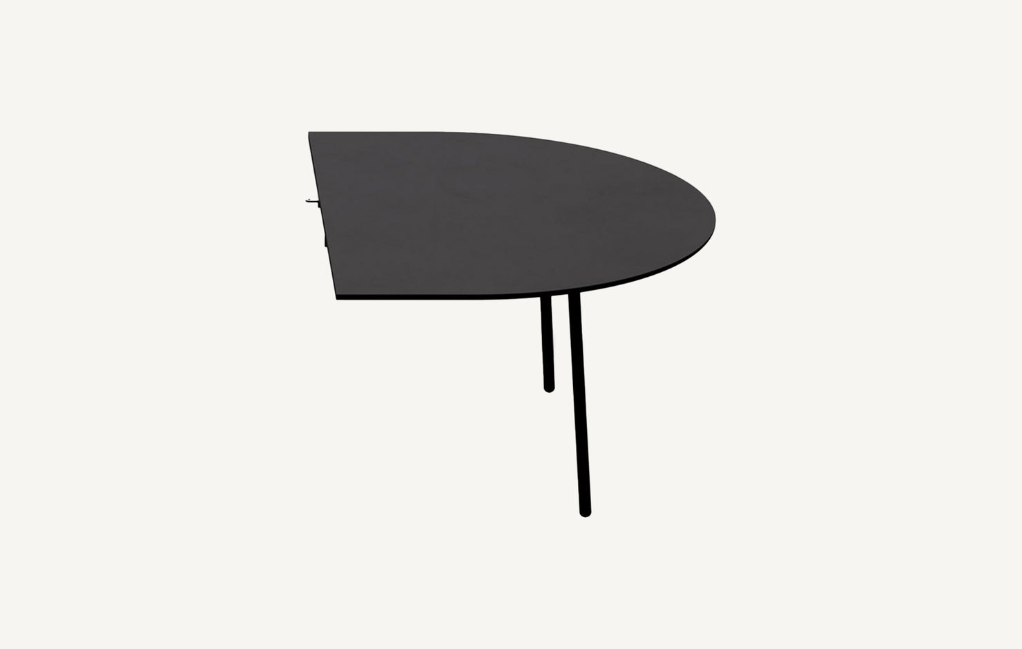 The wall-mounted end module to a modular table system that allows for both linear and curved configurations. Size and shape options are endless with this collection.