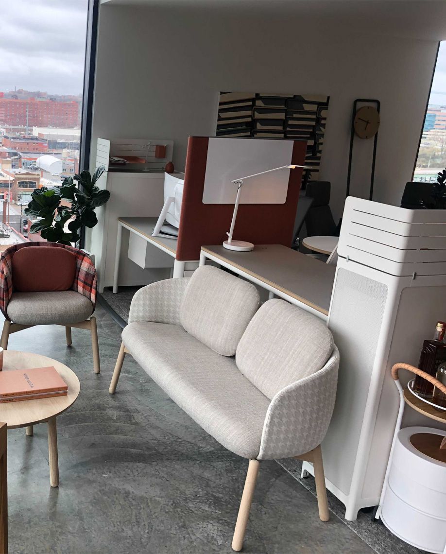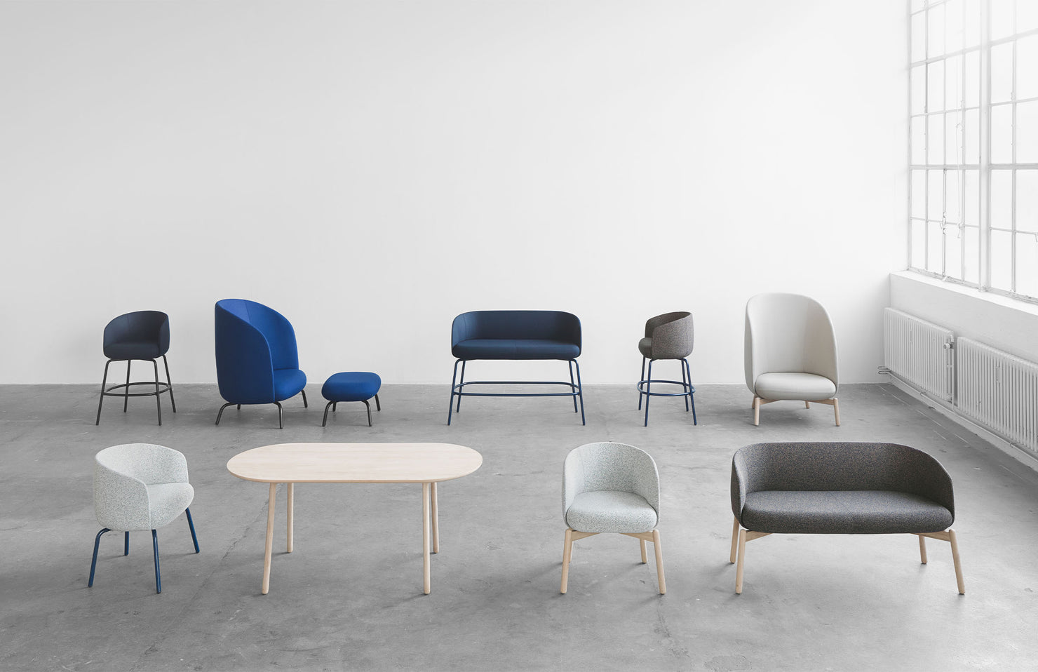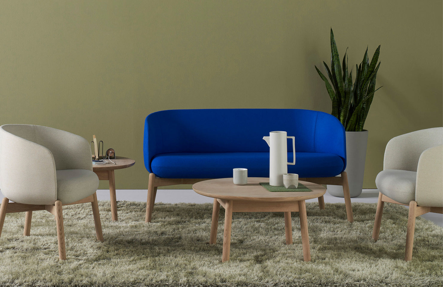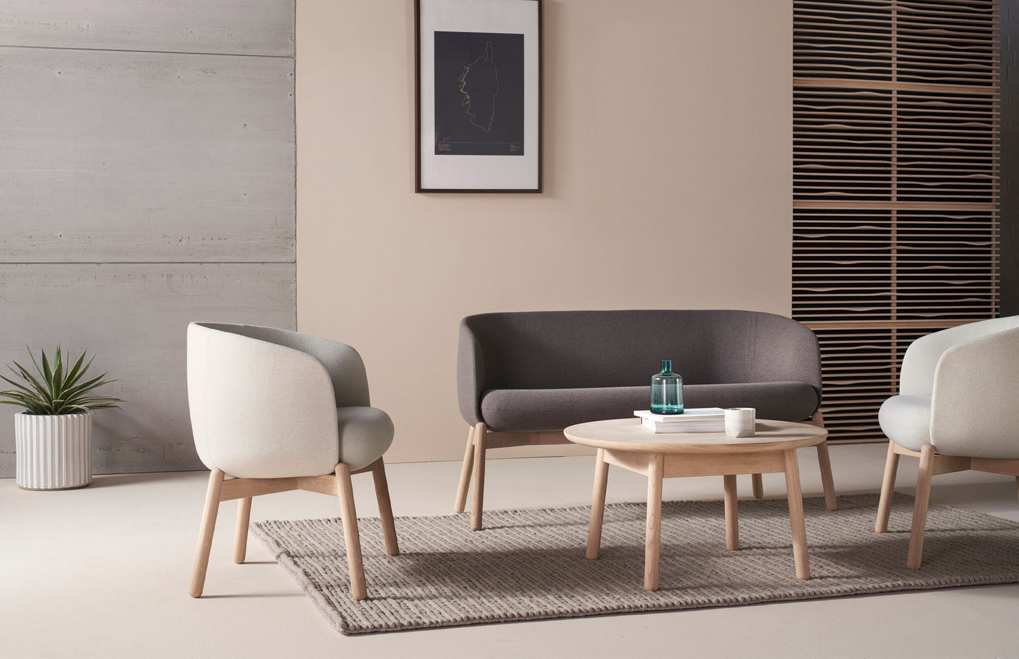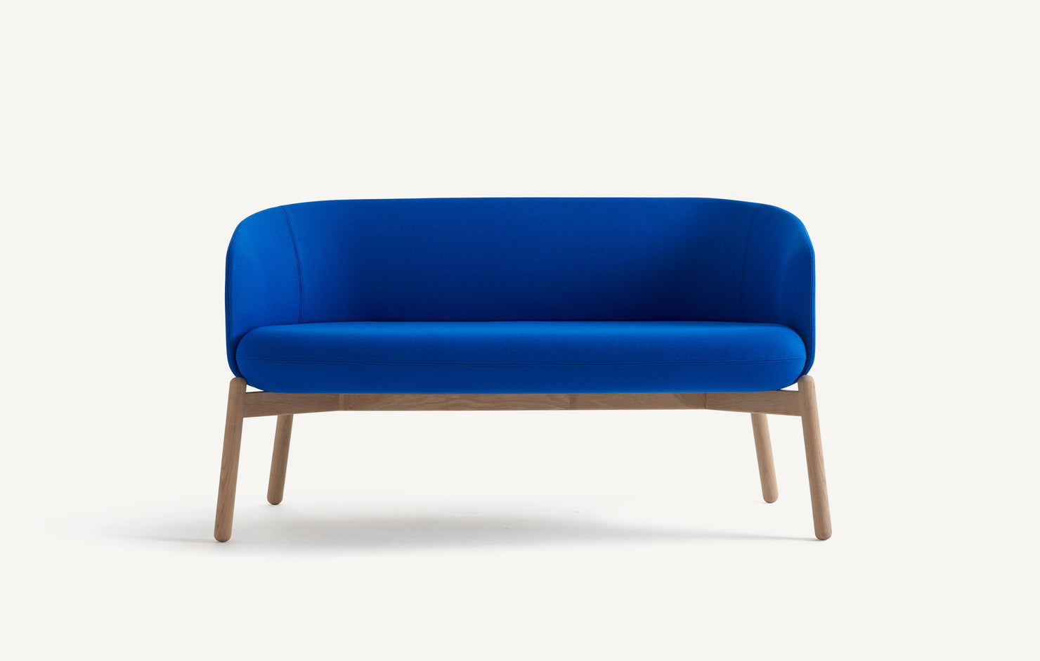 A soft and comfortable sofa, small in scale, that meets the demands of a wide variety of public spaces.