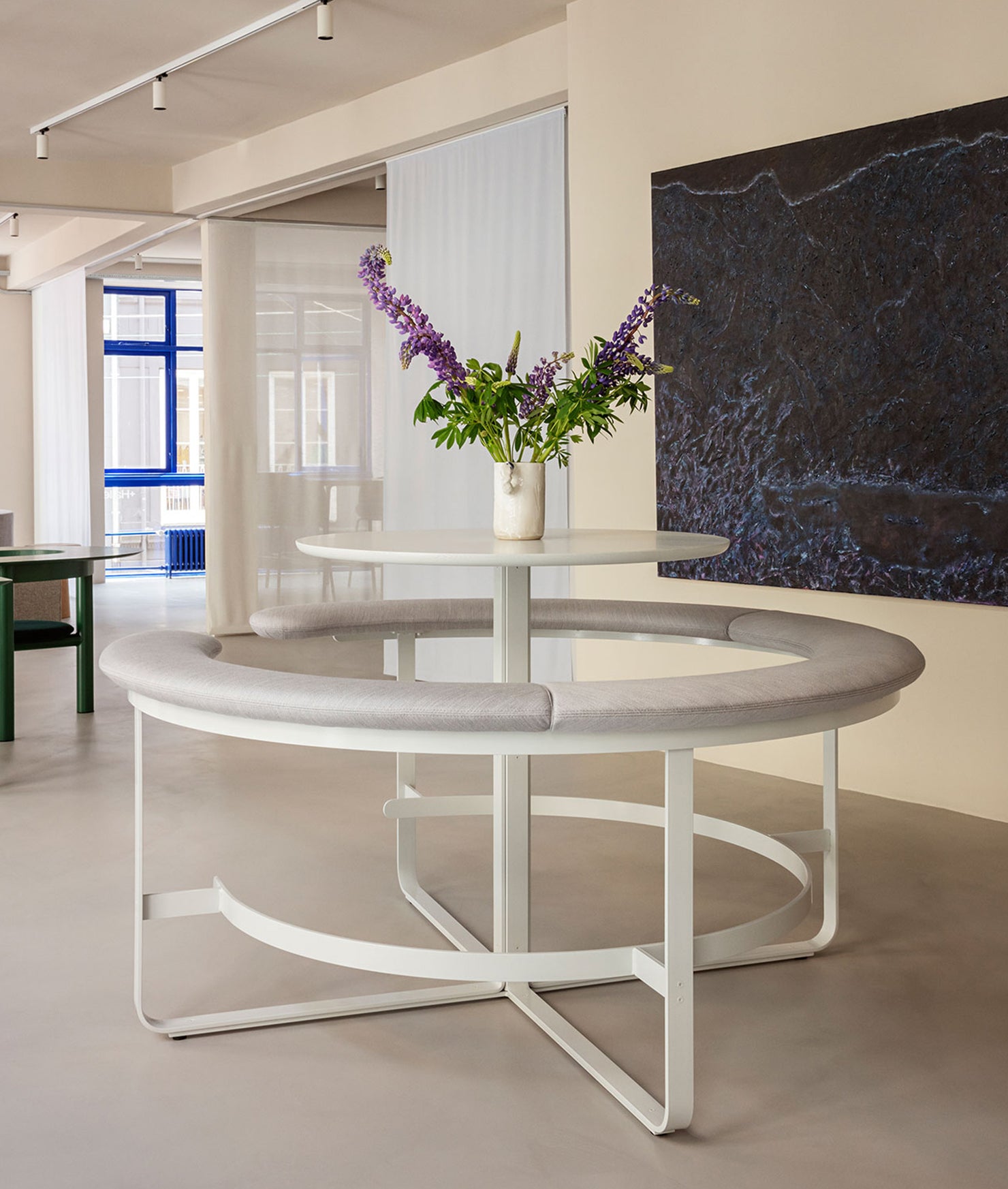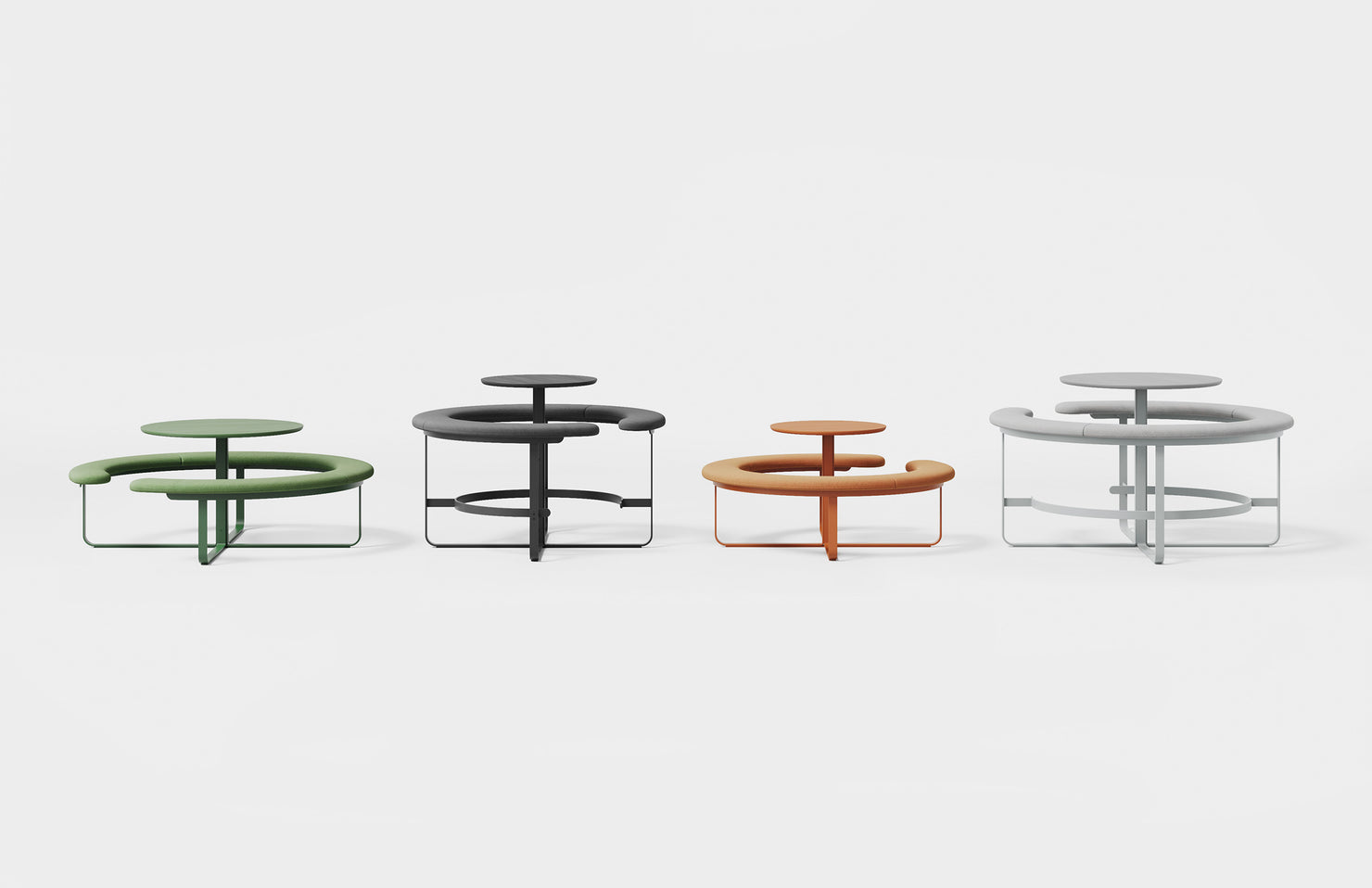 Picnic integrates seating with a table in one unit that can serve as a meeting, dining, and/or collaboration zone.