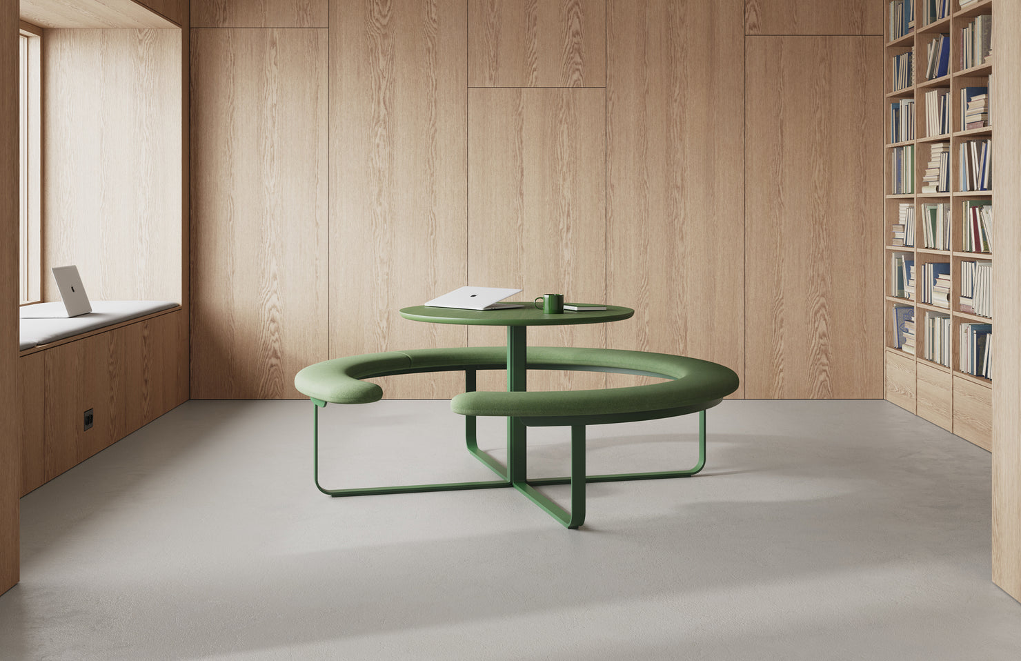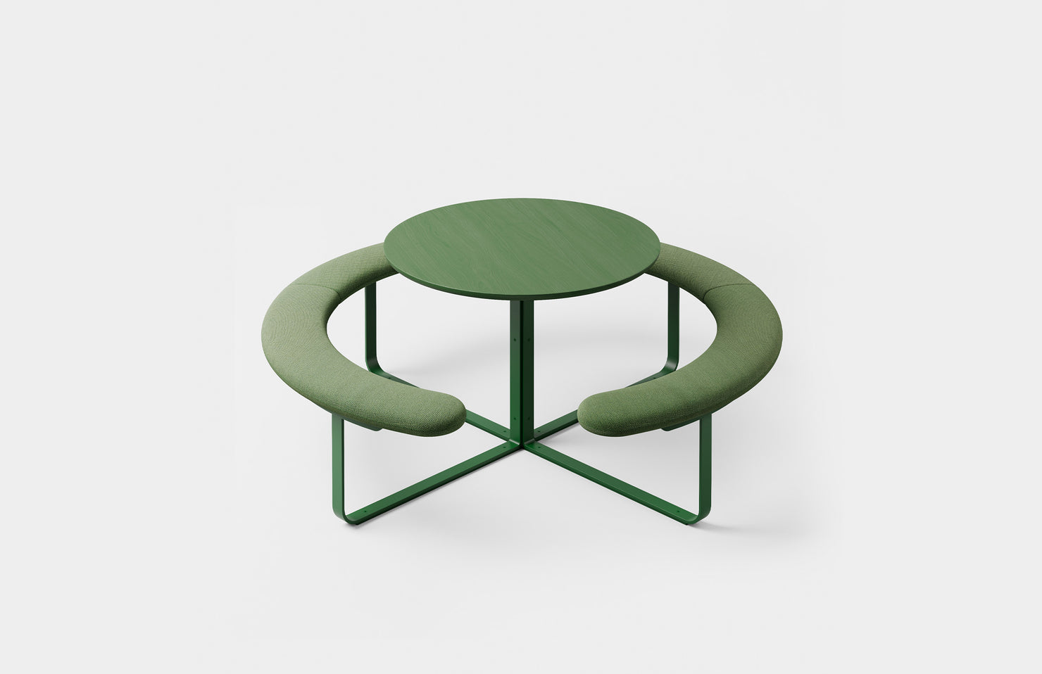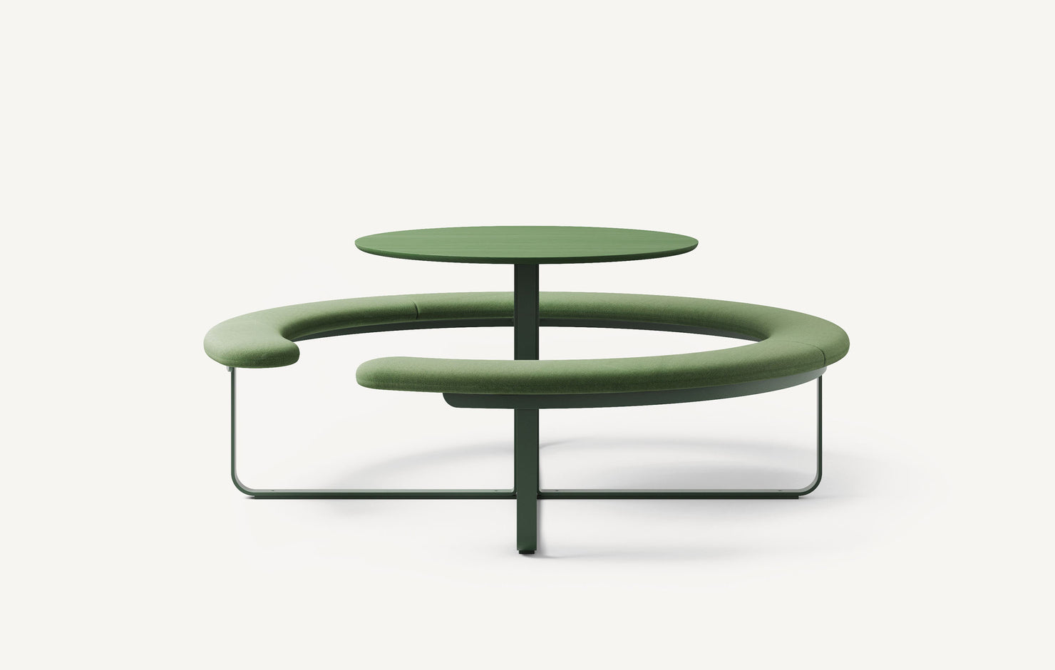 Picnic integrates seating with a table in one unit that can serve as a meeting, dining, and/or collaboration zone.