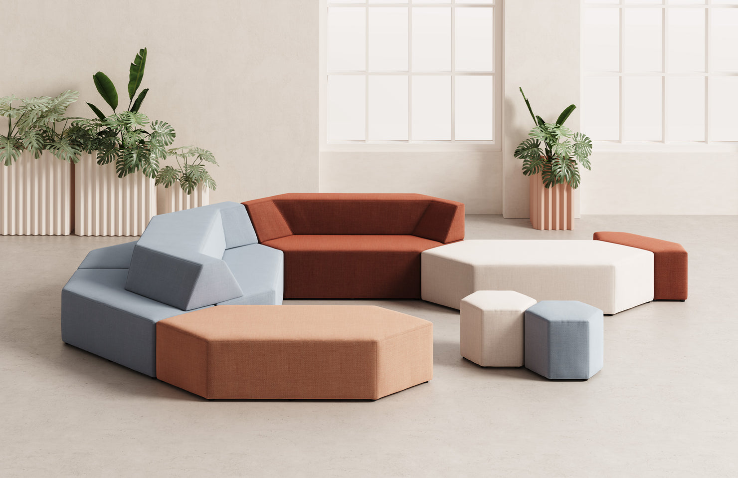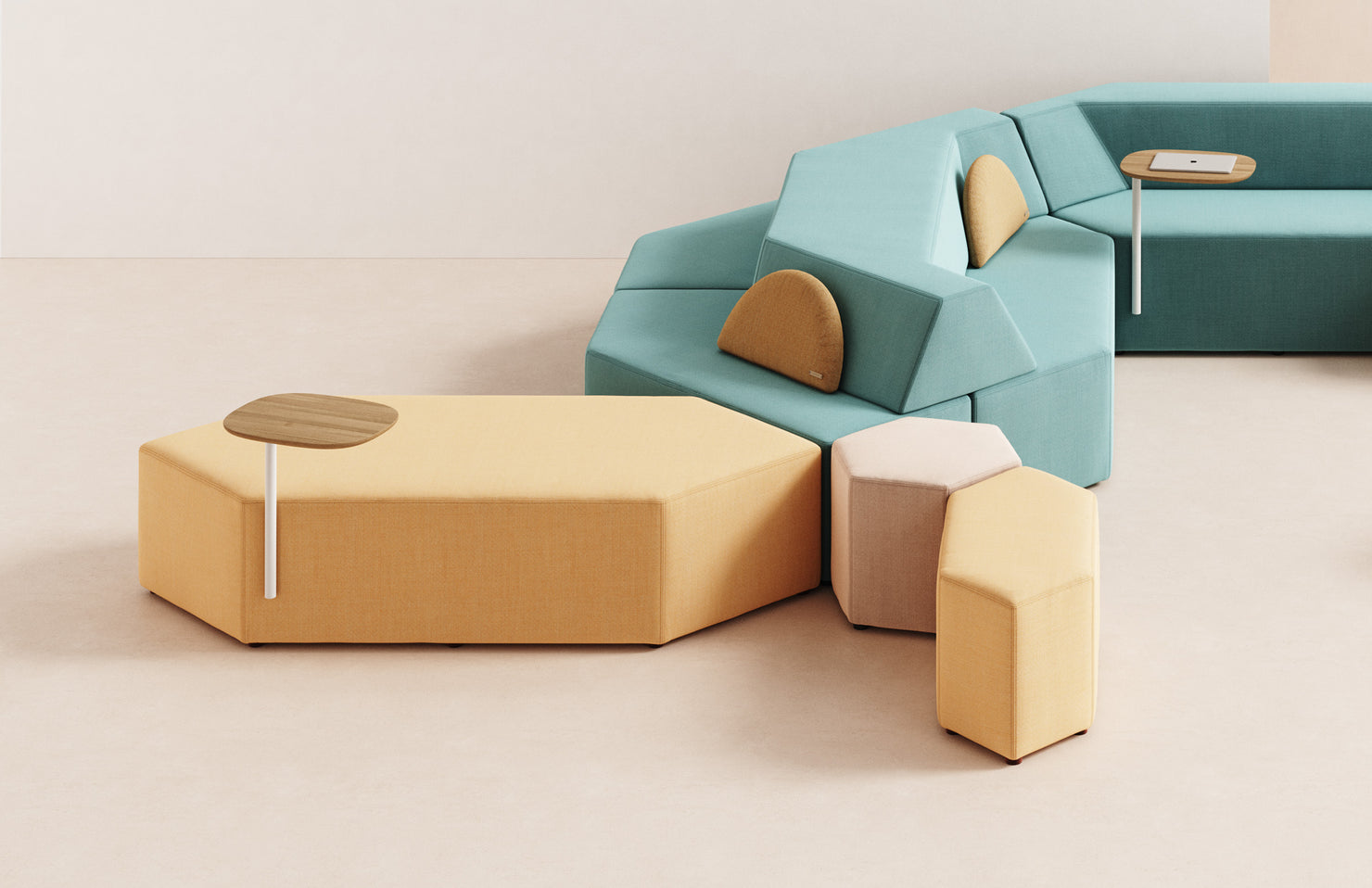 Use this hexagonal ottoman on its own or in conjunction with other Prism ottomans to create unique formations.