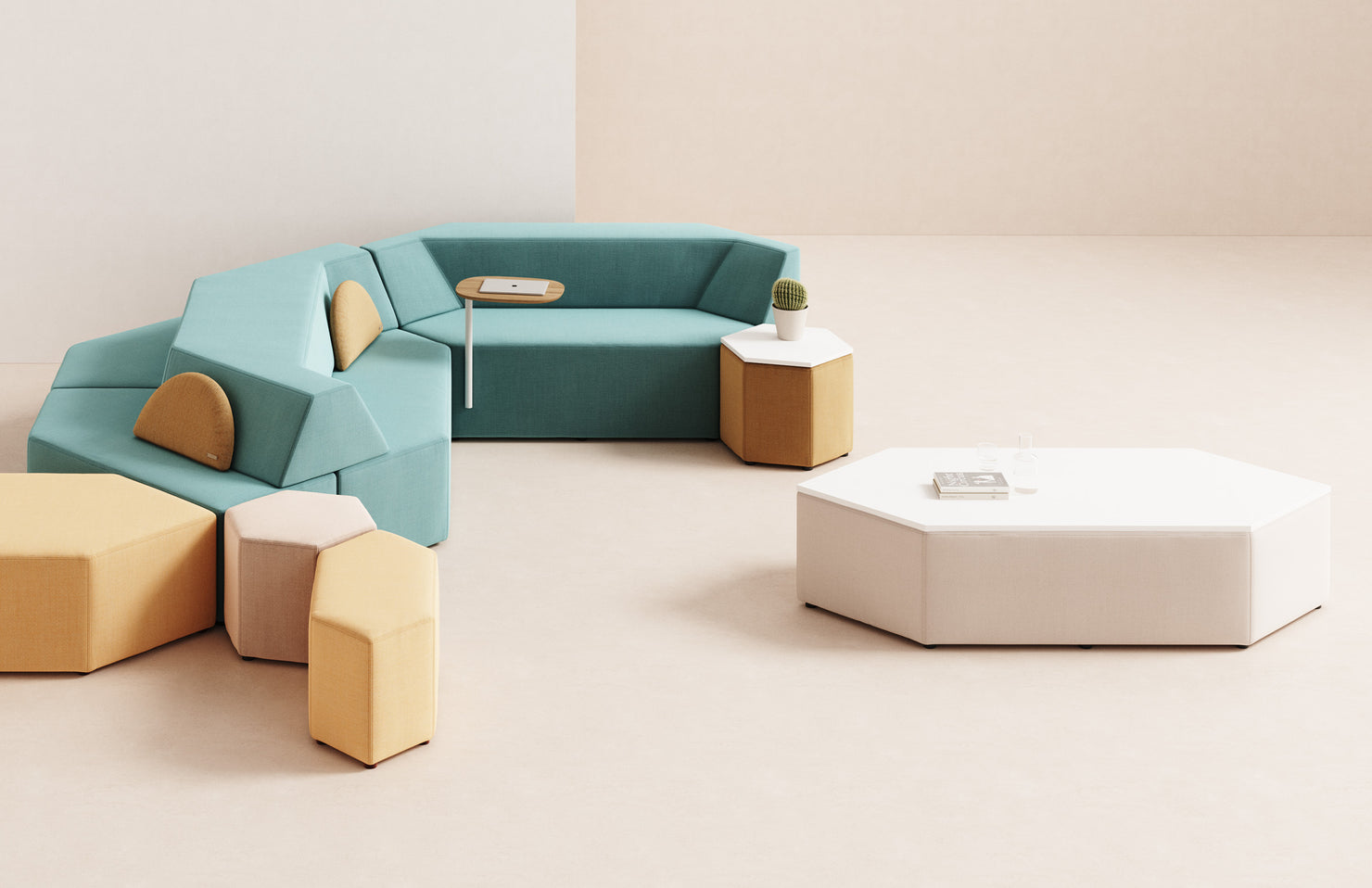 An add-on table for the Prism Modular Seating system that helps to enhance function with a hard surface for writing, laptops, beverages and more.