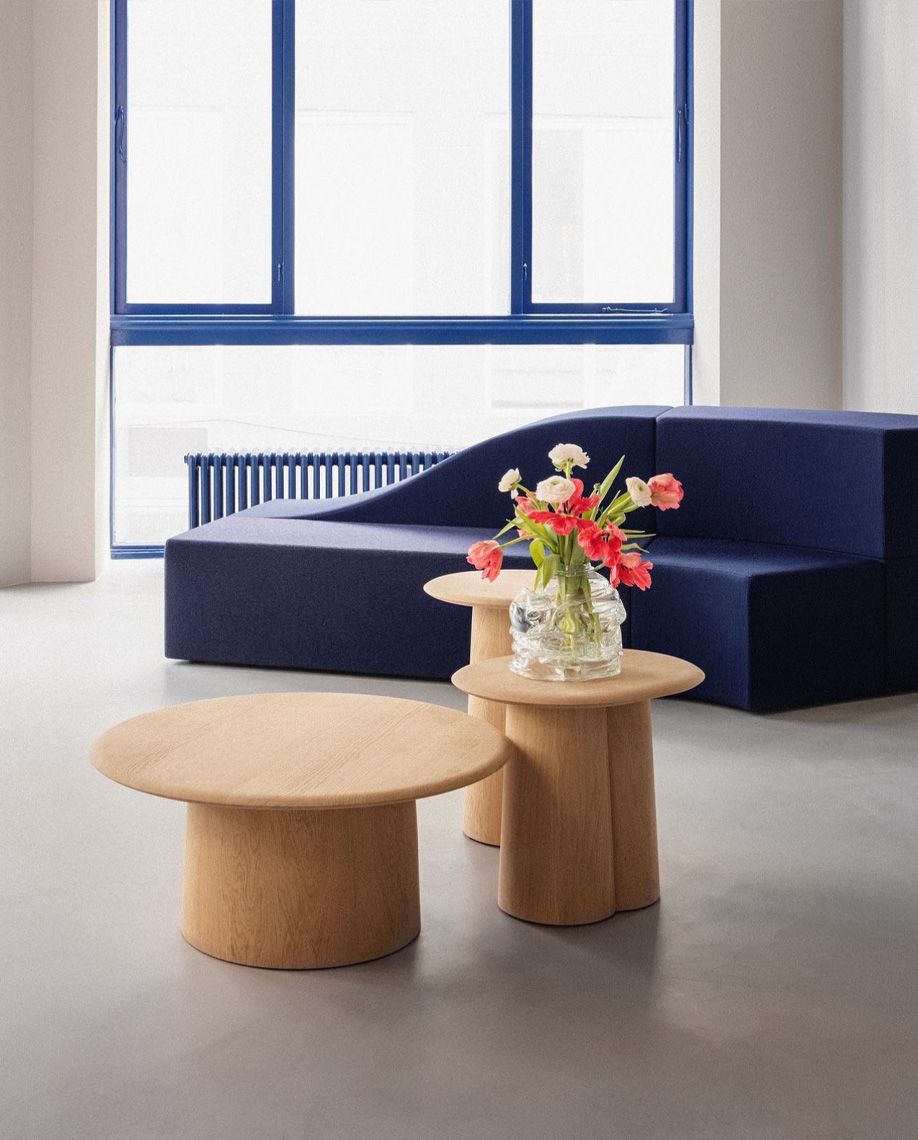 Made of oak, the tapered edge gives an added sense of tactility, adding a softness to the solid wood tops. Various sizes and shapes offered allow for easy combinations.