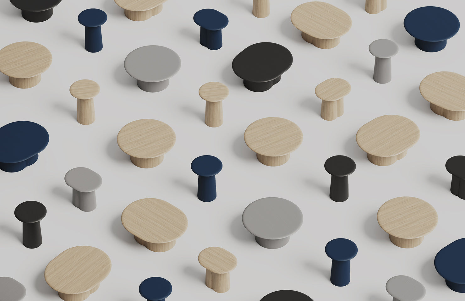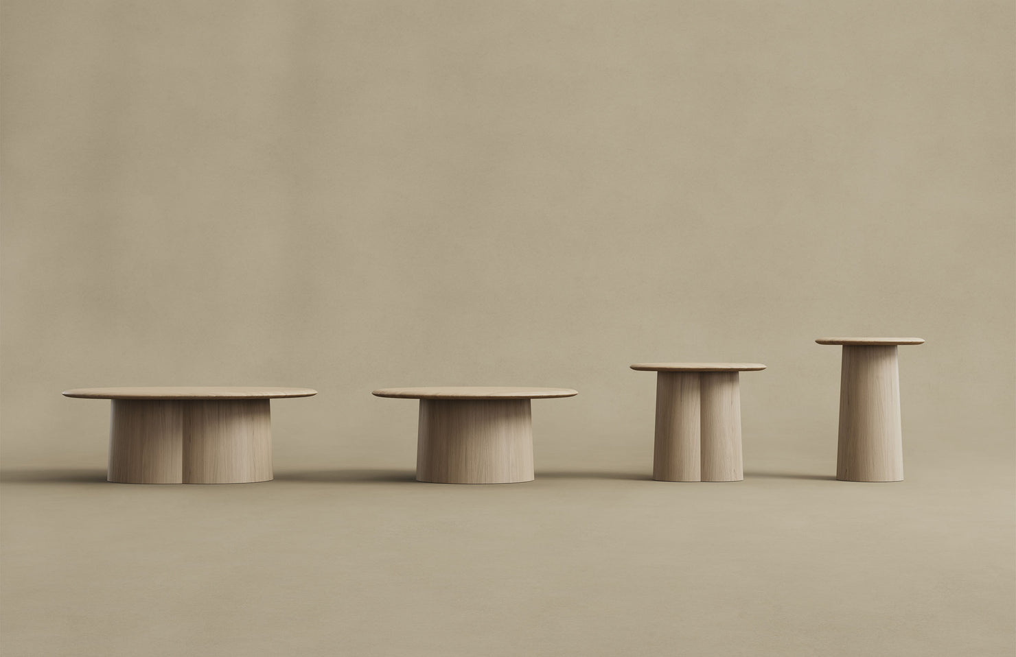Made of oak, the tapered edge gives an added sense of tactility, adding a softness to the solid wood tops. Various sizes and shapes offered allow for easy combinations.