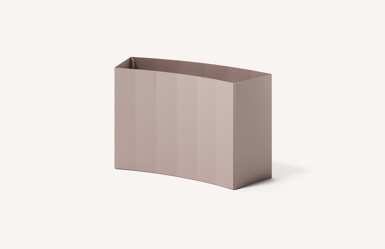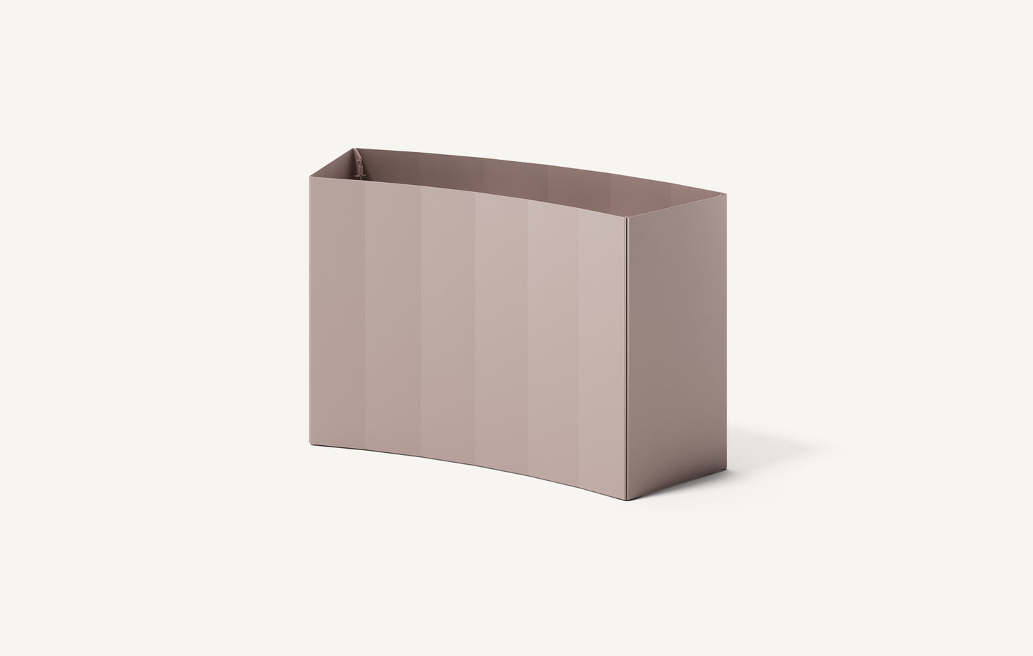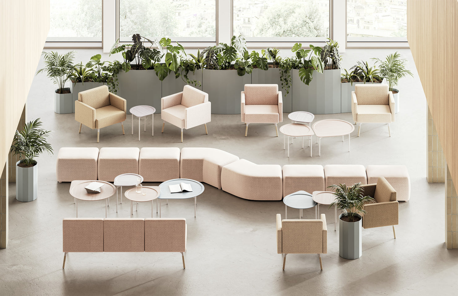 Part of a standalone/modular planter system featuring soft undulating curves, gentle visual facets, and optional wood surfaces; perfect for incorporating biophilia, creating quick touchdown points, and dividing spaces with a minimal footprint.