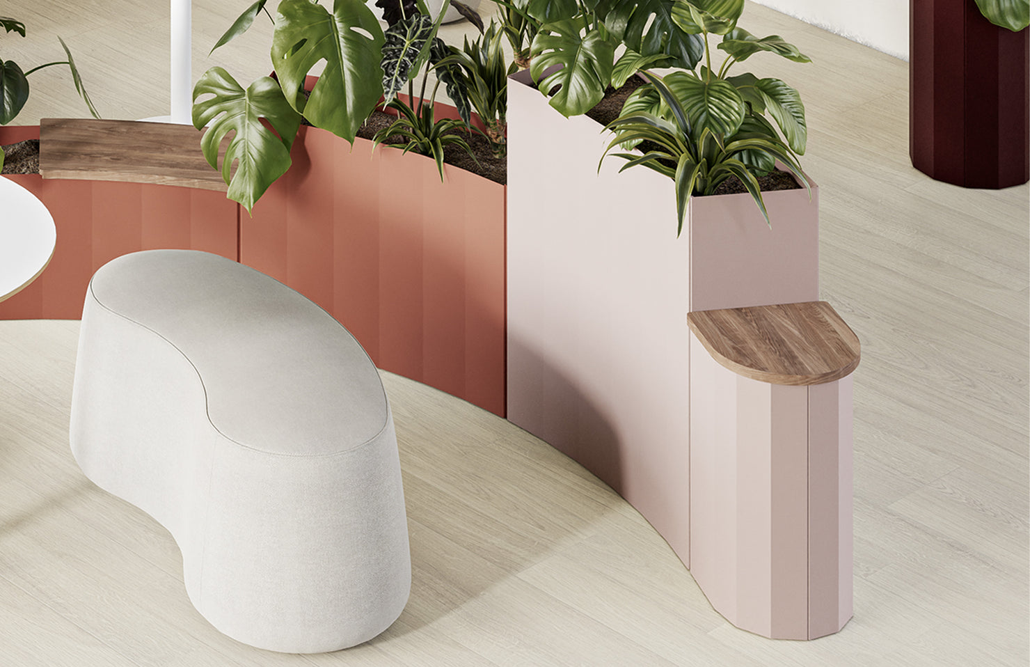 Optional wood top surface that compliments the standalone/modular planter system; converting modules into a quick touchdown point.