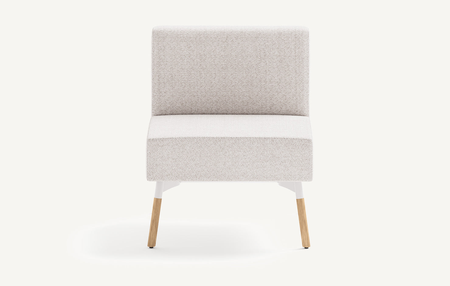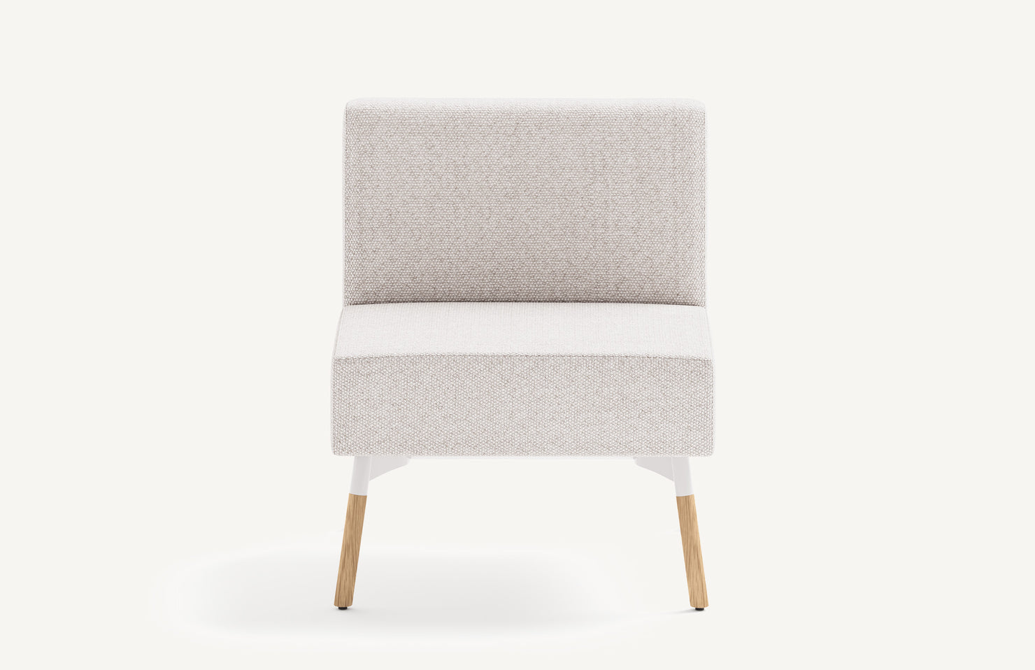 Wood contrasts with powder-coated metal creating an inviting lounge seating option.