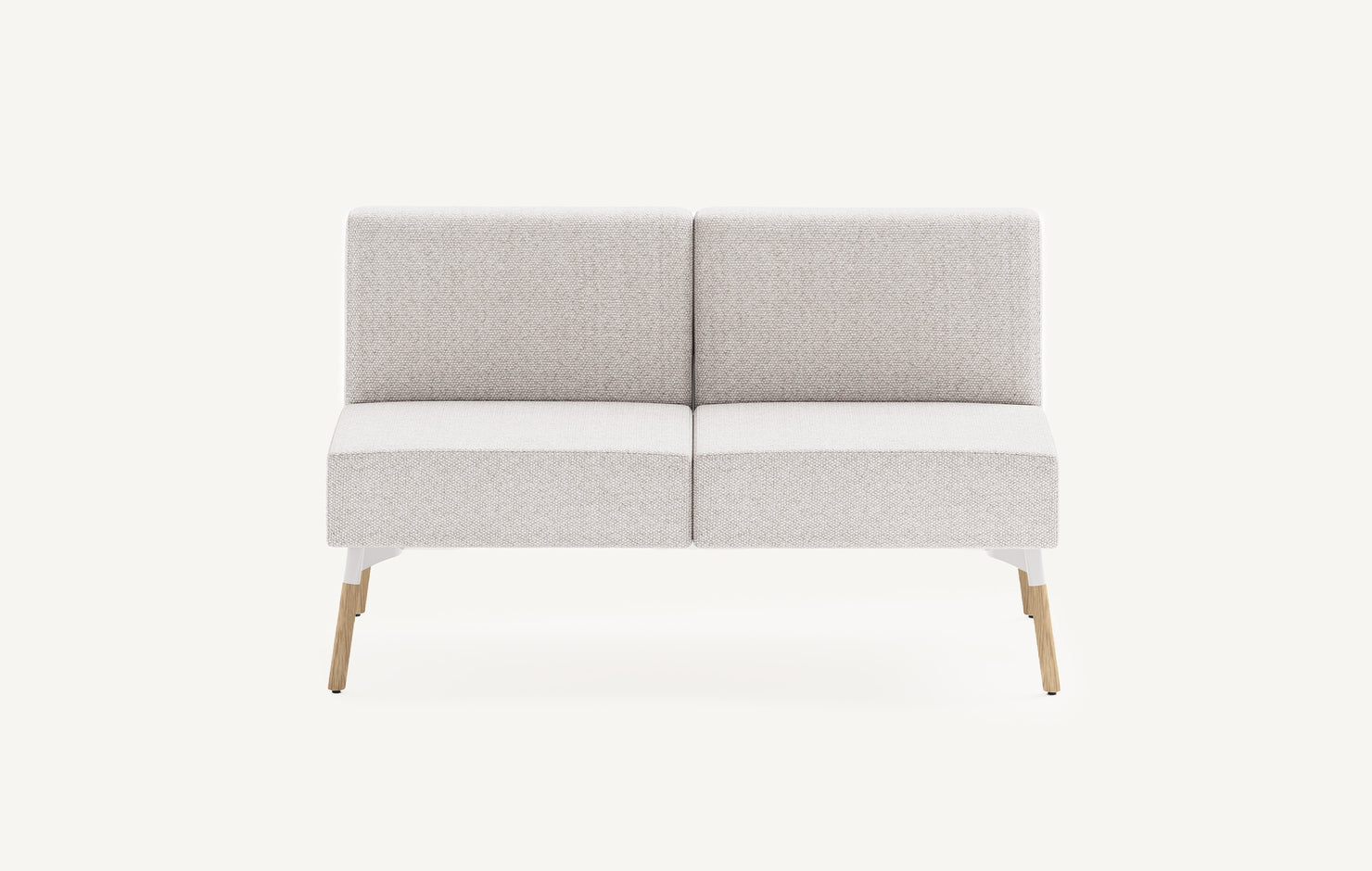 Wood contrasts with powder-coated metal creating an inviting lounge seating option.