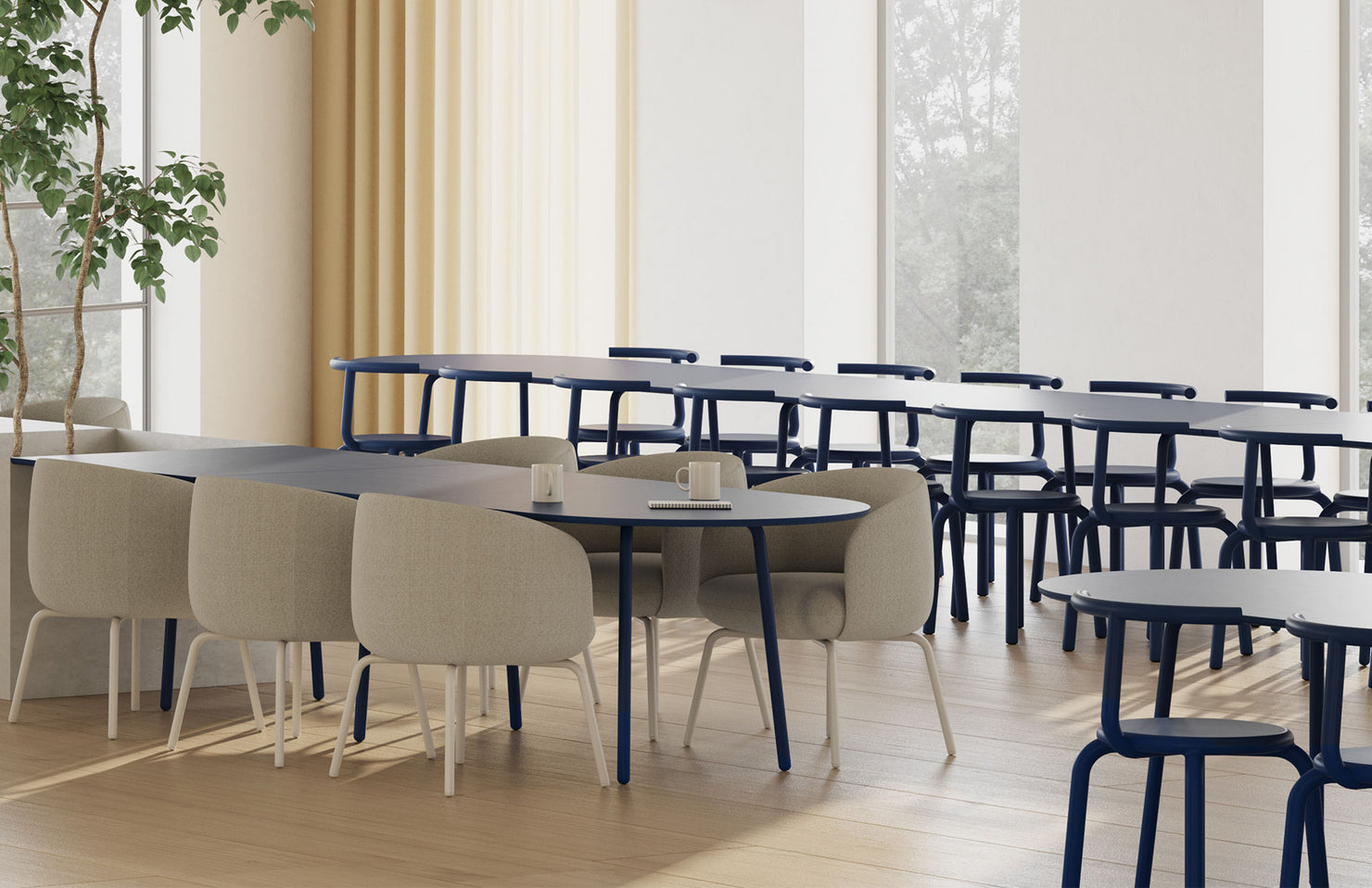 Made for mobility: sit in various positions, take the lightweight chairs to a breakout session, stack them up and store away when not in use.