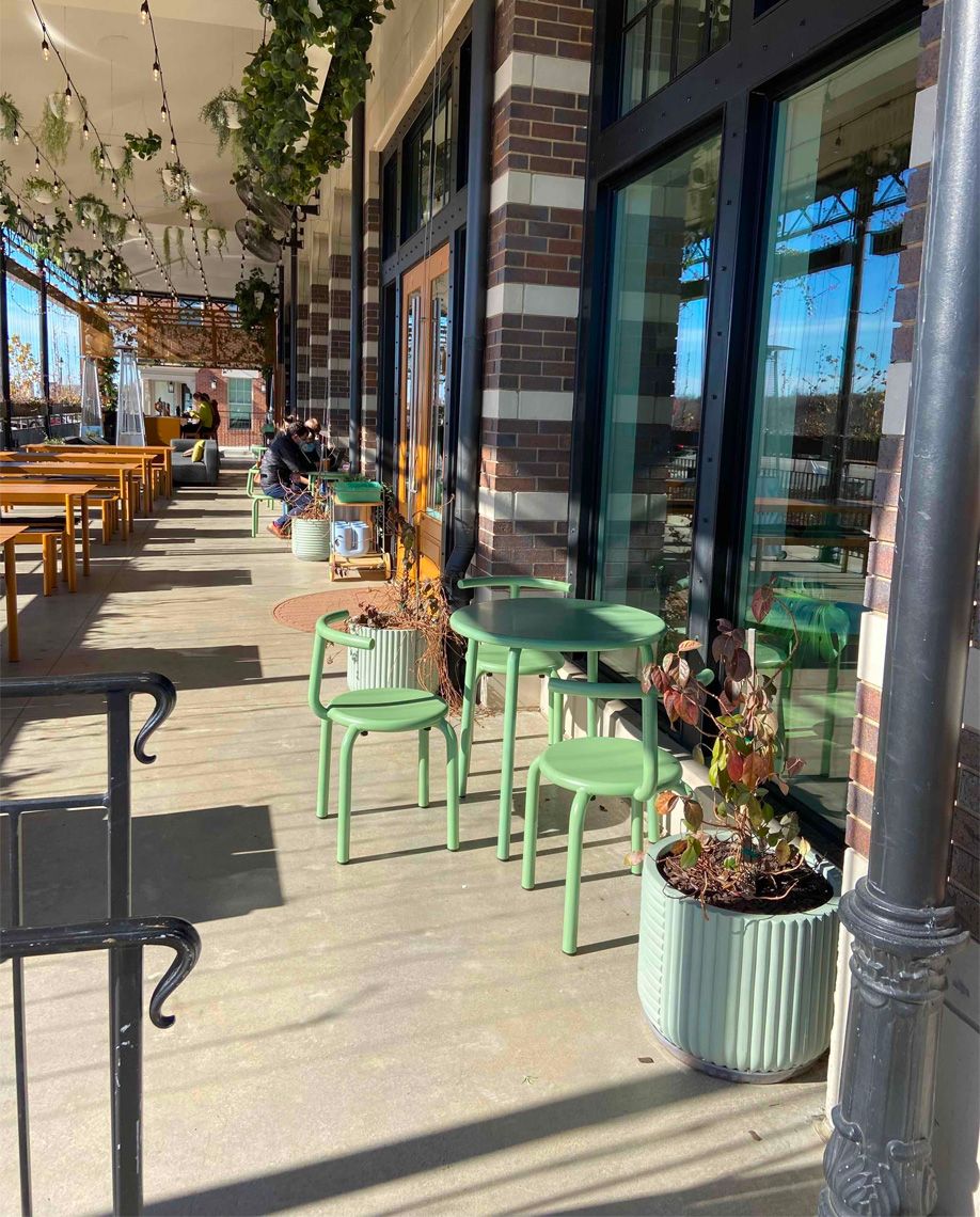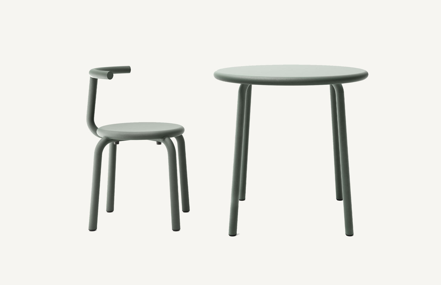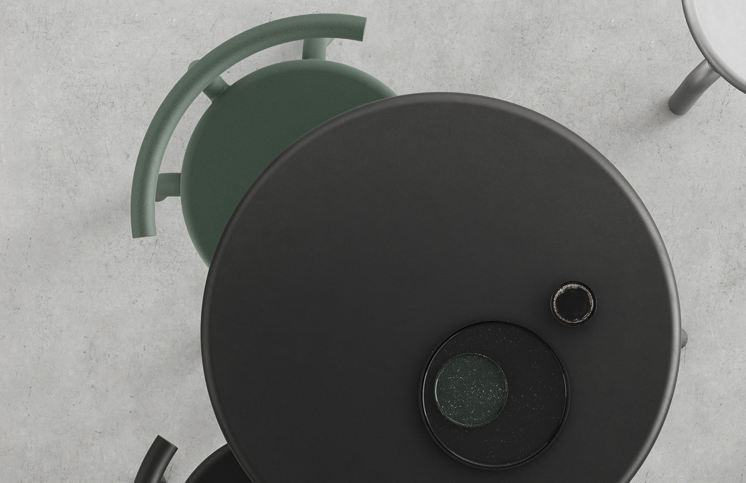 Built for indoor or outdoor use, the Torno Café Table is a simple and subtle addition to versatile spaces. The rounded elements pair perfectly with the Torno Chairs and Stools and create a playful aesthetic.