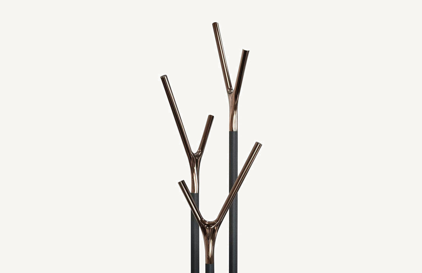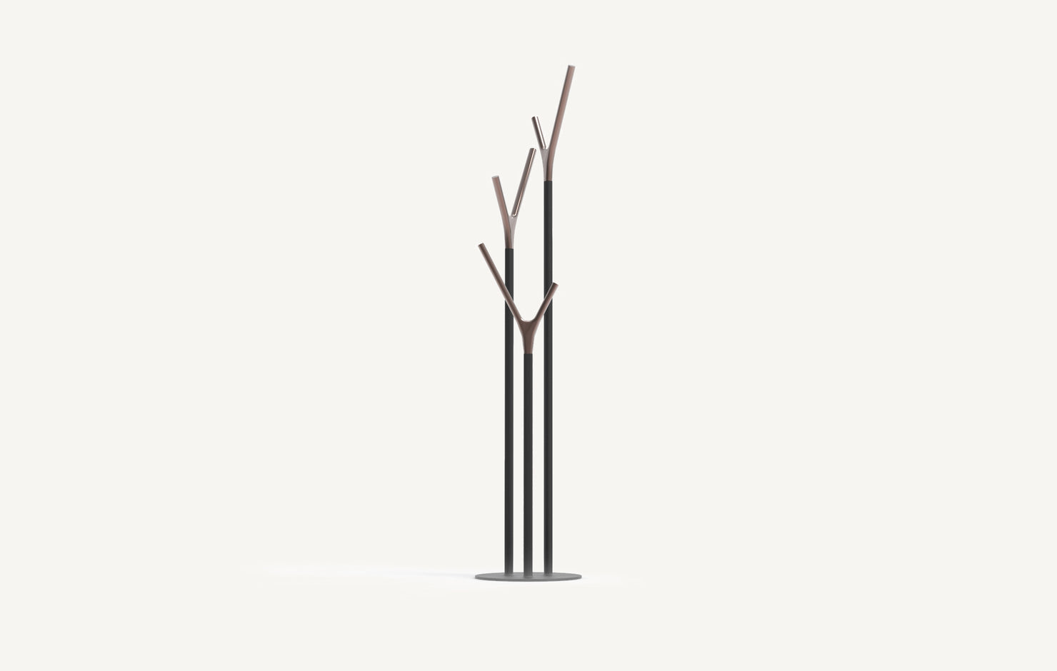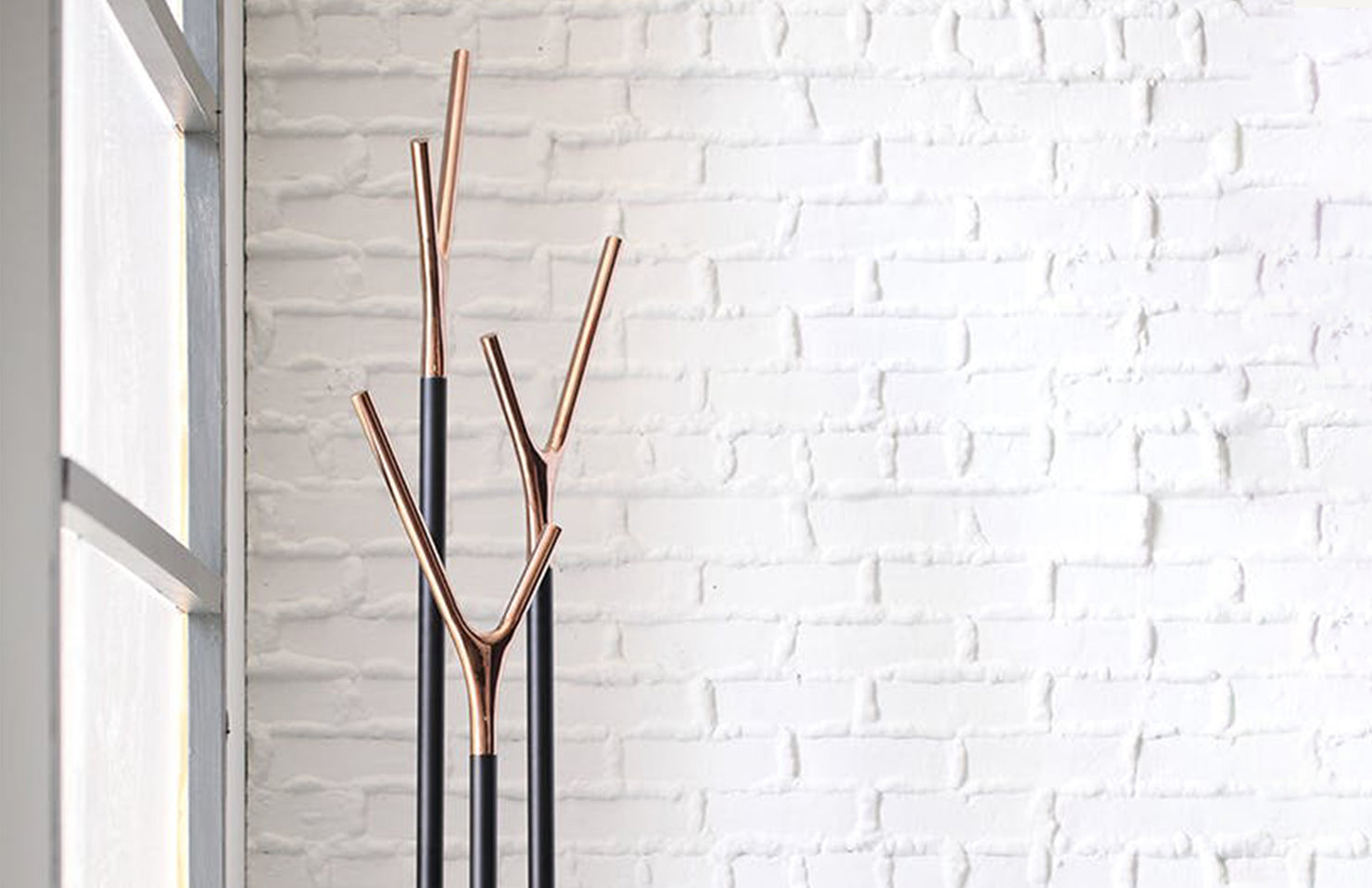 A functional and artistic coat rack that adds interest and intrigue to a public setting.